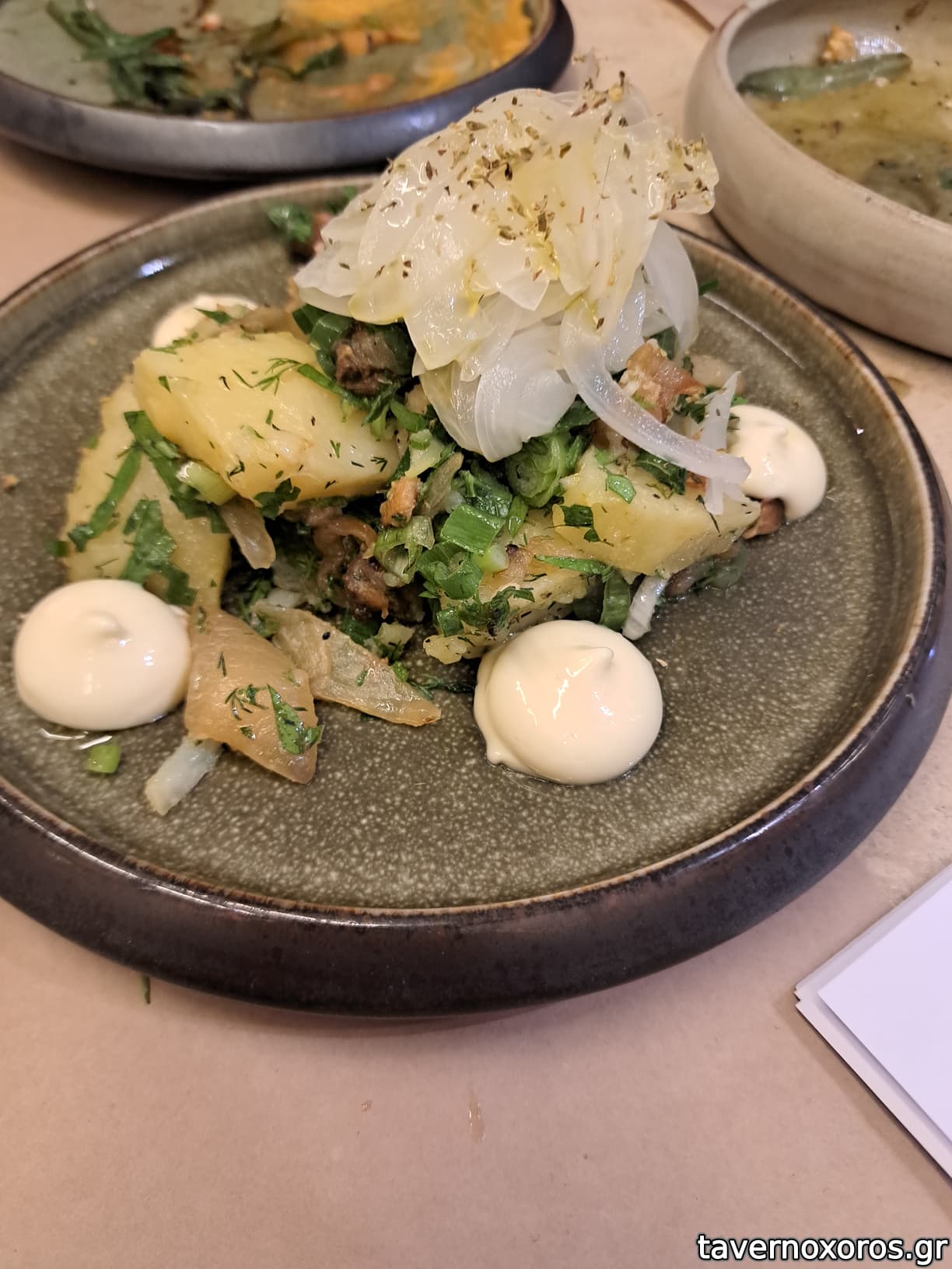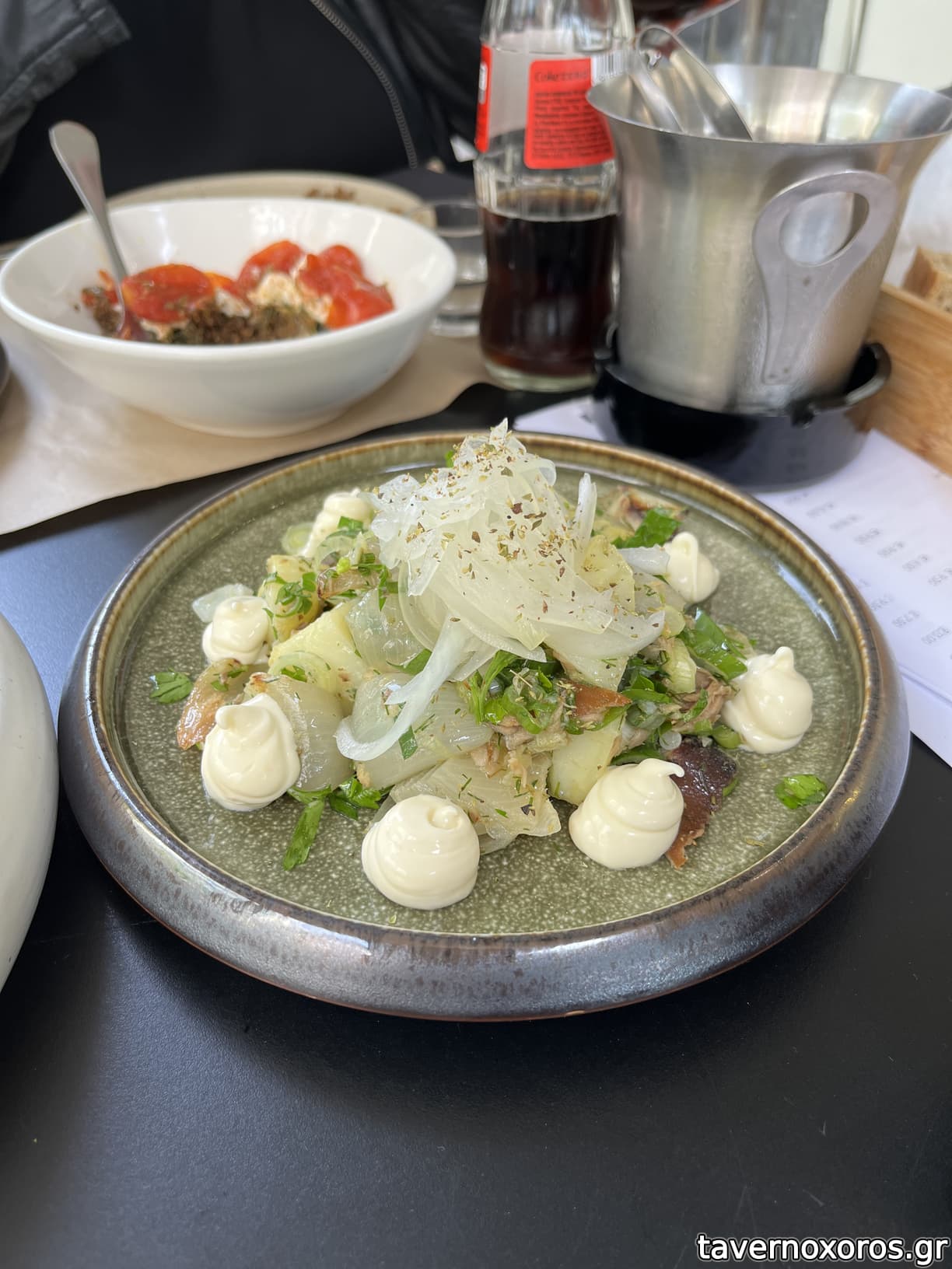 Σαλάτα με πατάτα, ρέγγα, λεμόνι, μαγιονέζα, πίκλα κρεμμύδι (12€, δεν άξιζε τα χρήματά του)