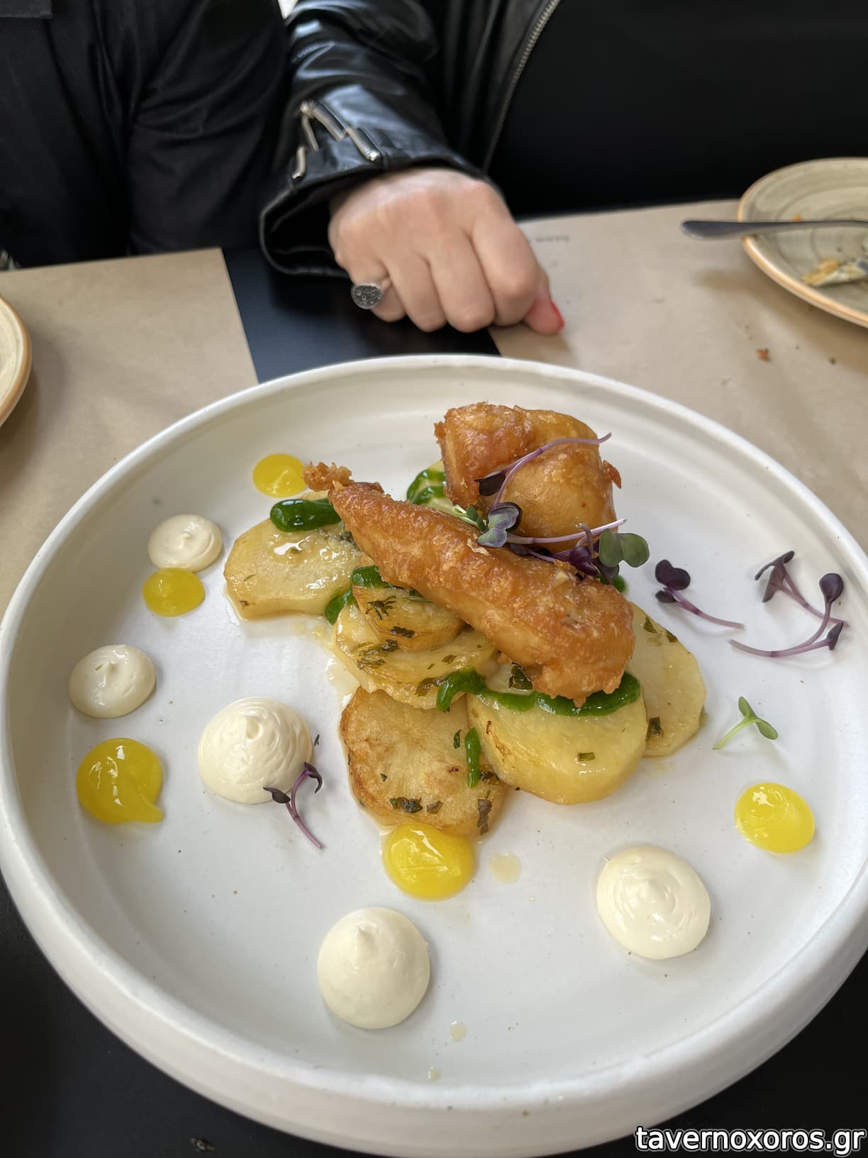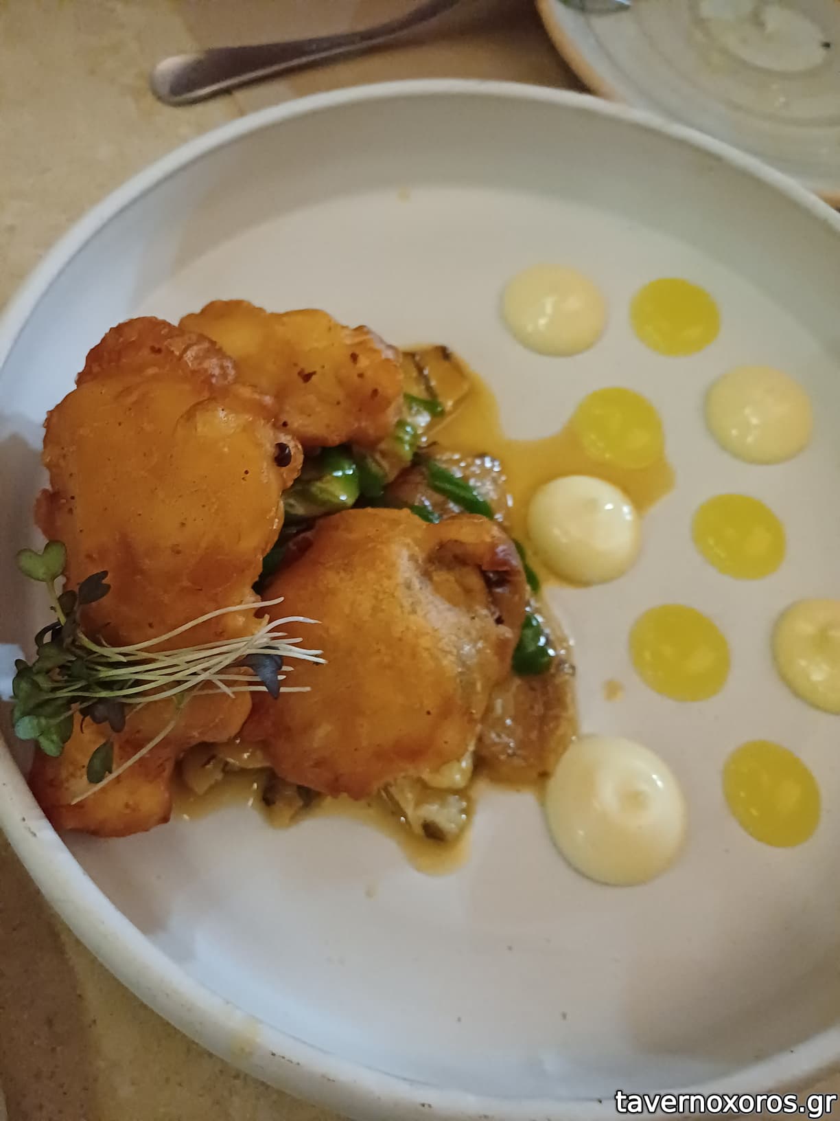 - αδιάφοροι οι κολοκυθοανθοί με τα θαλασσινά (ειδικά σε υφή), καλή η σως (πιάτο ημέρας)