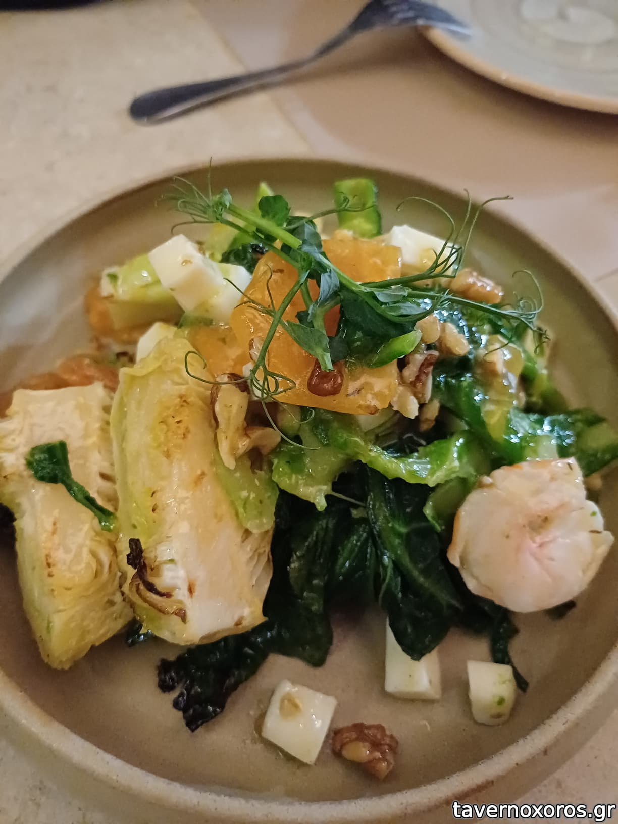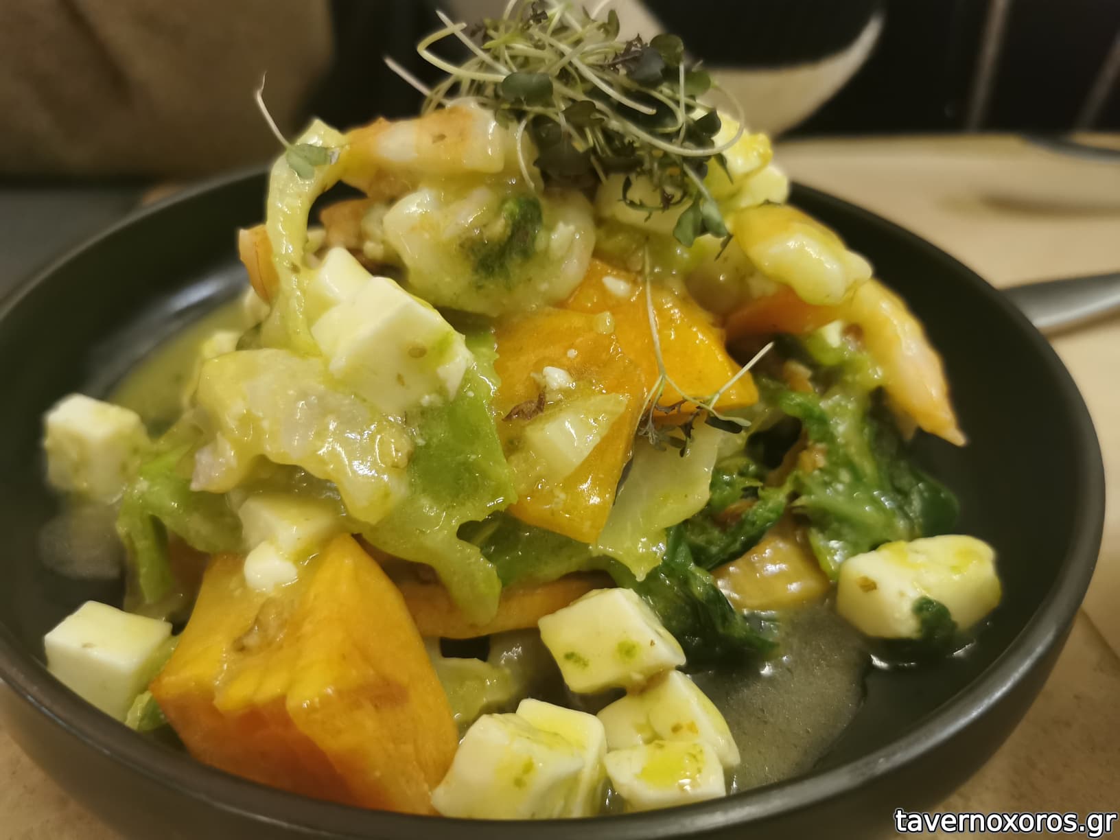 Λαχανίδα με λωτό, τυρομάλαμα και γαρίδες (πολύ καλή)