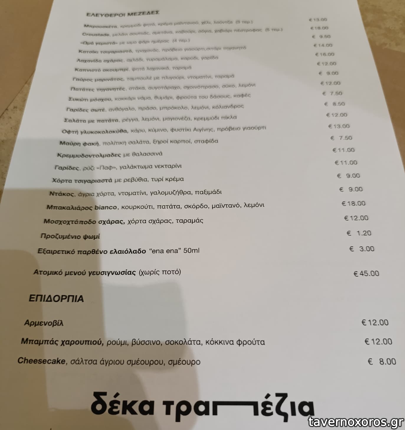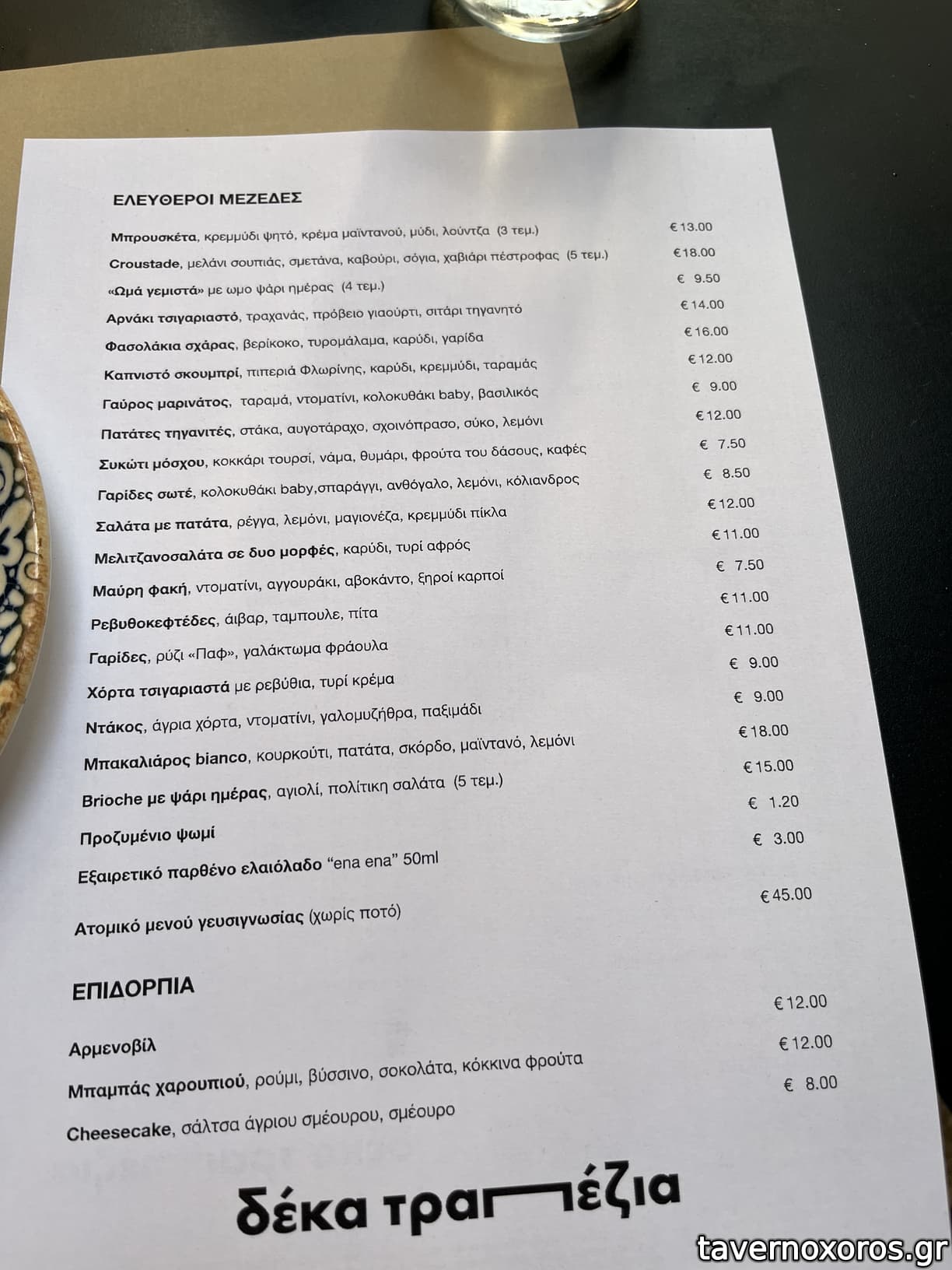 Οι τιμές σε σχέση με τον περσινό Απρίλιο έχουν ξεφύγει ενώ σε ορισμένα πιάτα υπάρχει άνοδος μέχρι και 5 ευρώ (!!). Όλα έχουν ανέβει από 2 έως 3 ευρώ κατά μέσο όρο. Σε συνδυασμό με τις πραγματικά μικρές μερίδες, το κόστος είναι τρομακτικό.