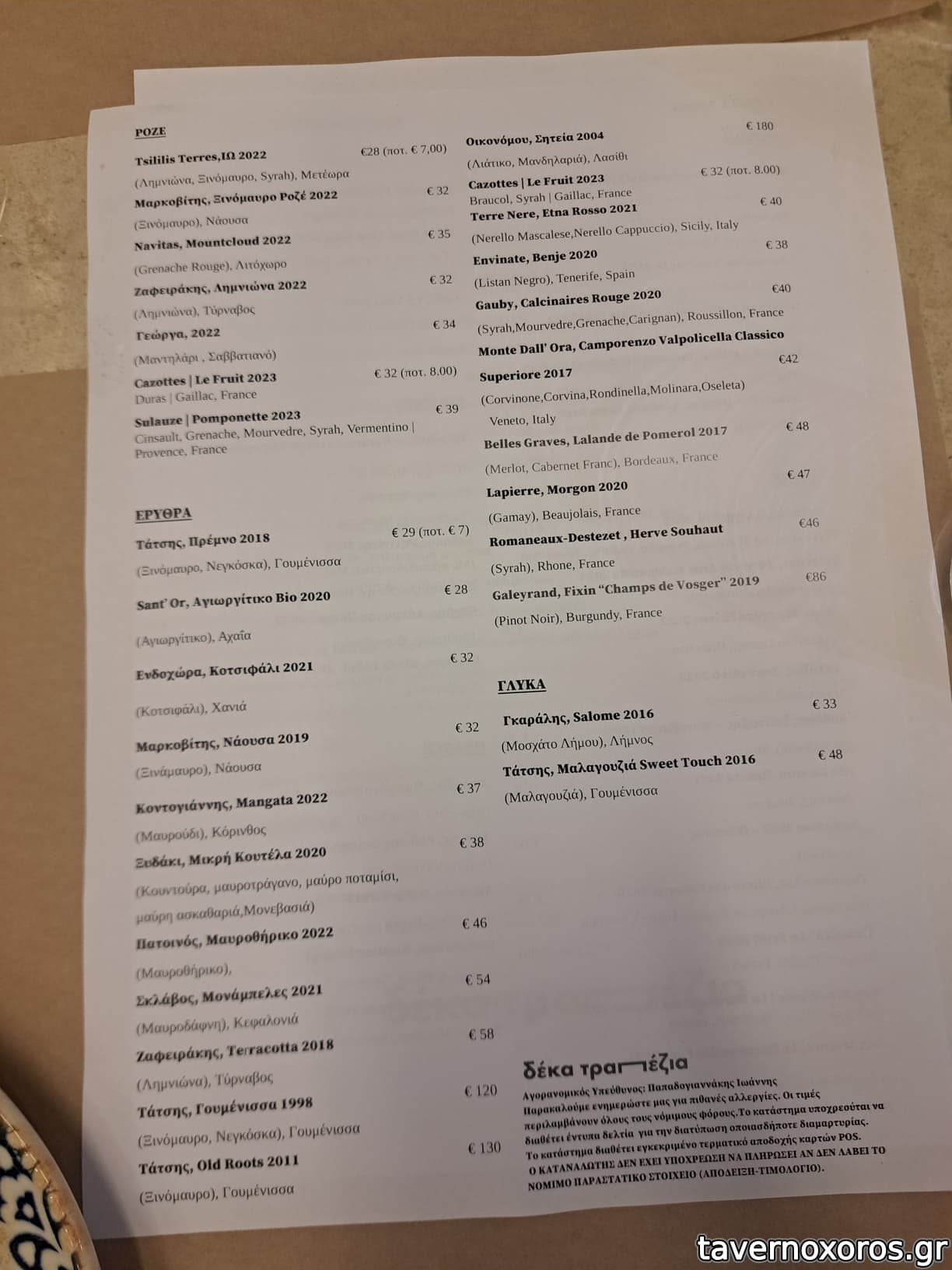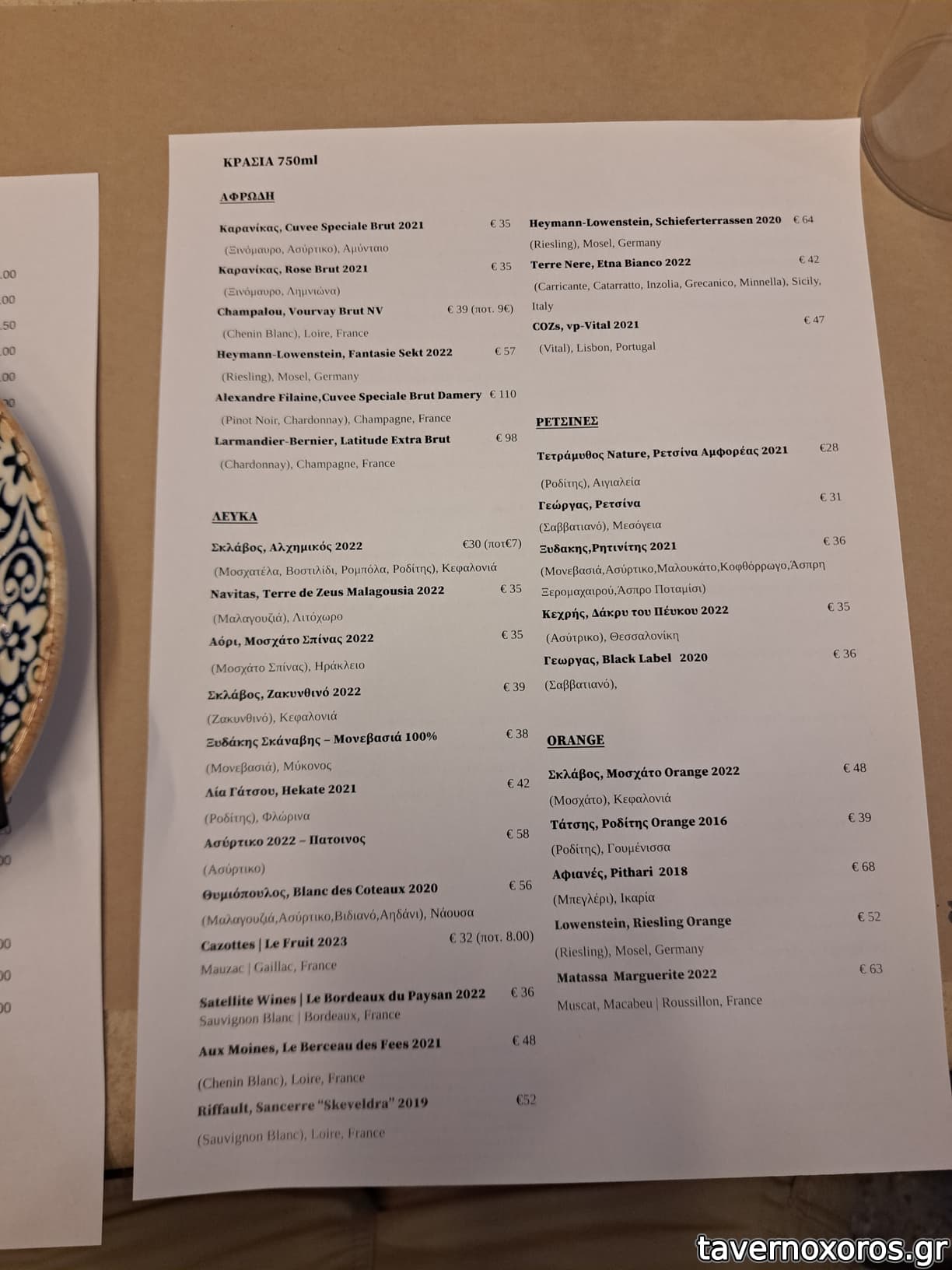 Λίστα κρασιών μέτρια προς καλή. Στα λευκά θέλει μερικές ακόμα επιλογές.