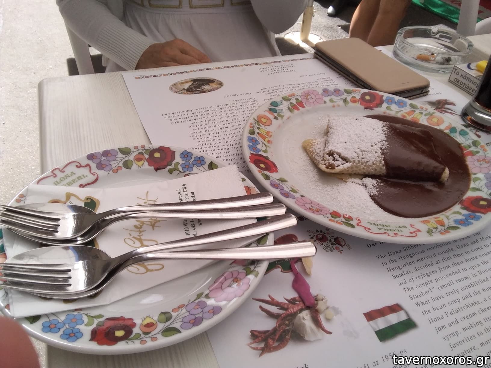 Gundel-palacsinta (γλυκιά κρέπα με γέμιση ξηρούς καρπούς και σως μαύρης σοκολάτας)