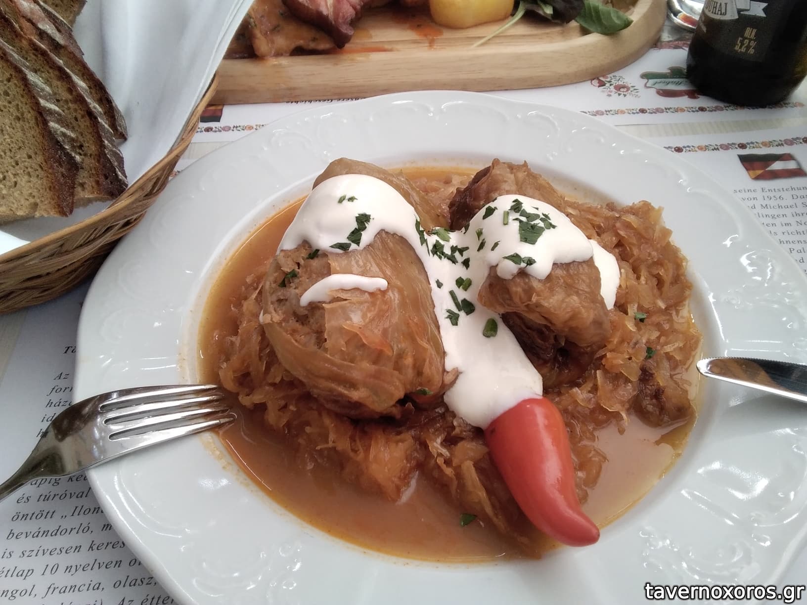 Töltött Káposzta (λαχανοντολμάδες με κιμά και ρύζι & συνοδευτικό ξινολάχανο με καπνιστό χοιρινό)