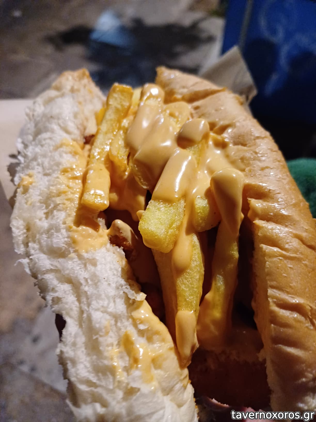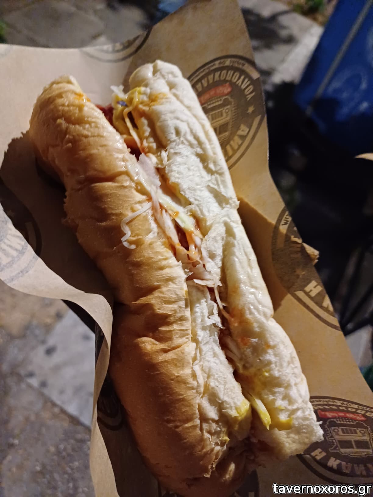 Γνωριμη αγαπημενη γευση απο παλια, το σπεσιαλ βραστο (διπλο) λουκανικο, στο σουπερ σφουγγαρο-αφρατο τους ψωμακι (με λαχανο,κρεμμυδι,πατατες, και μια φτυαρια απο διαφορες σως).