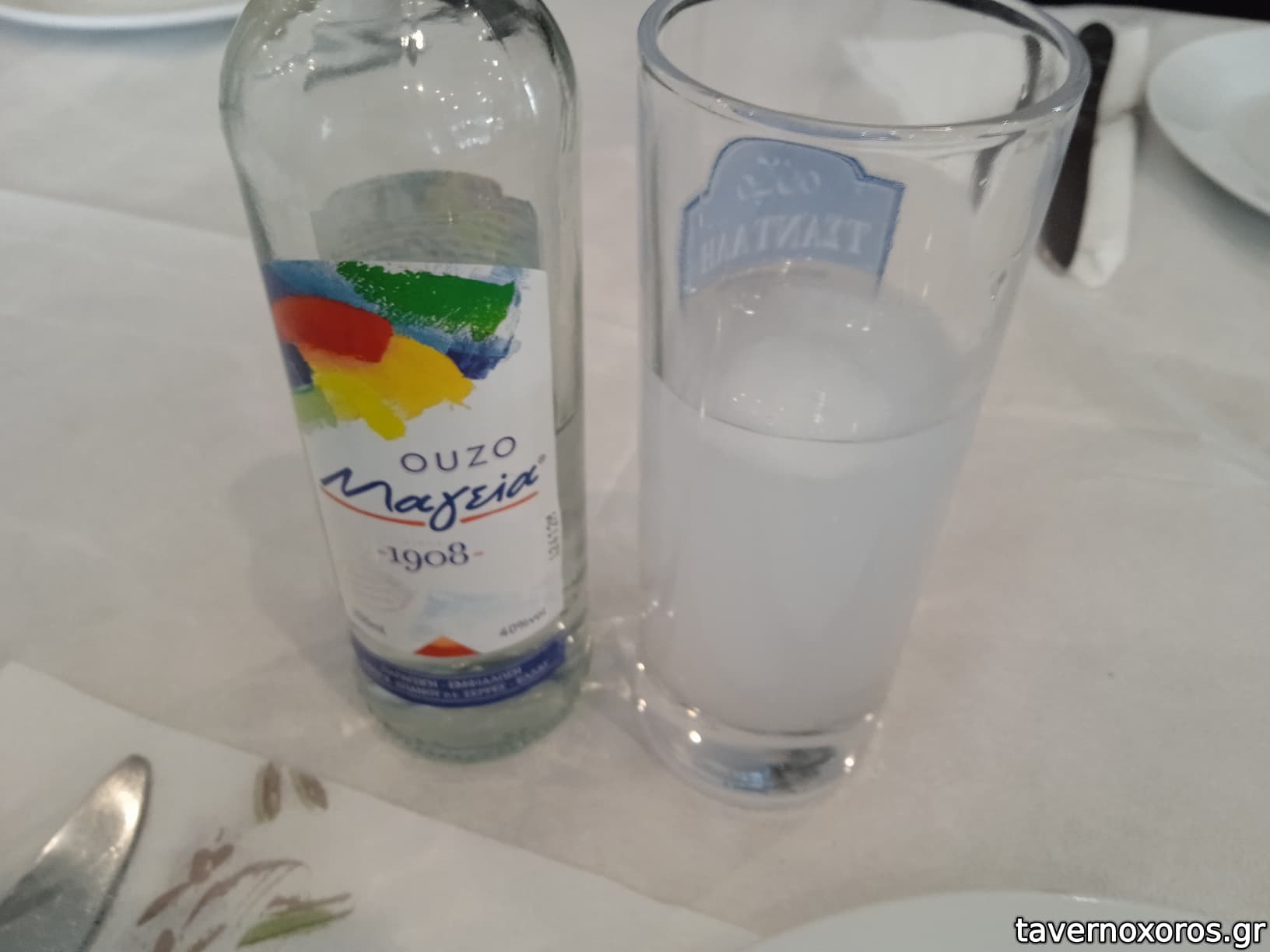 Ήπιαμε τσίπουρο χύμα άνευ (x3), συμπαθητικό. Νερό εμφιαλωμένο (χωρίς ερώτηση).