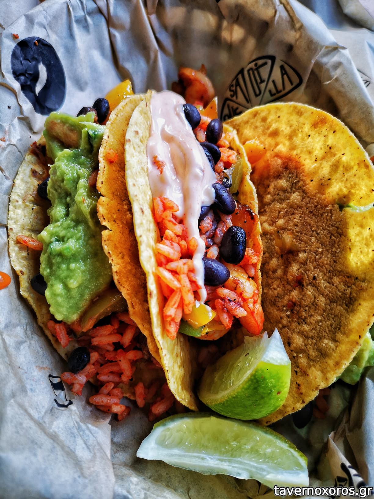 Μεγαλη βιτρινα, και πολλες οι επιλογες. Πχ απο κρεατα μπορουσες να βαλεις, μοσχαρι, χοιρινο, γαριδες, γυρο κλπ κλπ. Πολλες σαλτσες, αλοιφες (γουακαμολε/γιαουρτι κλπ), διαλεγες την "καυτεροτητα" που επιθυμουσες.