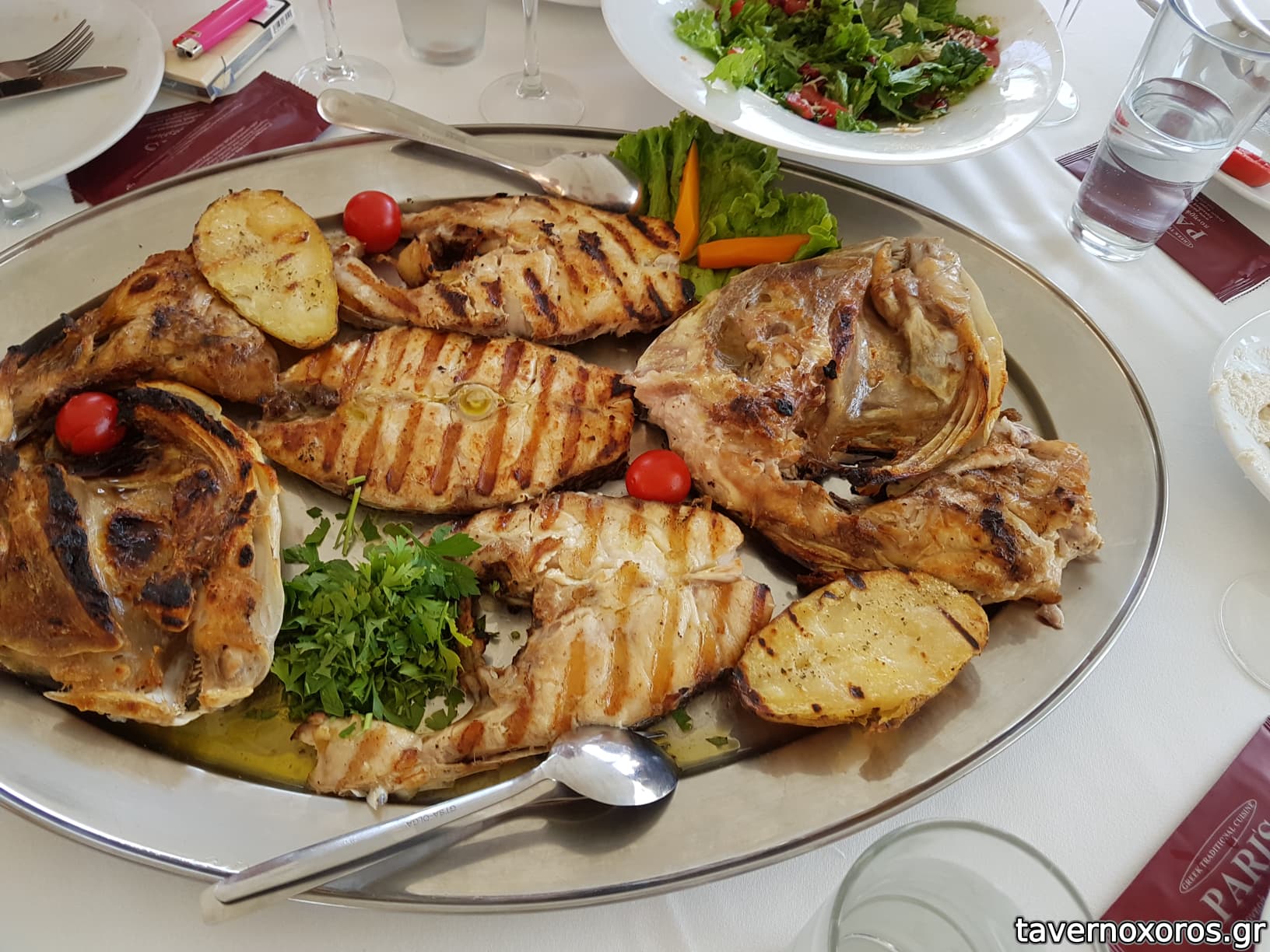 Μας έβαλε στο κάρβουνο ένα τσαούση 2 κιλά, που ήταν πολύ φρέσκος και τον έψησε πολύ καλά.