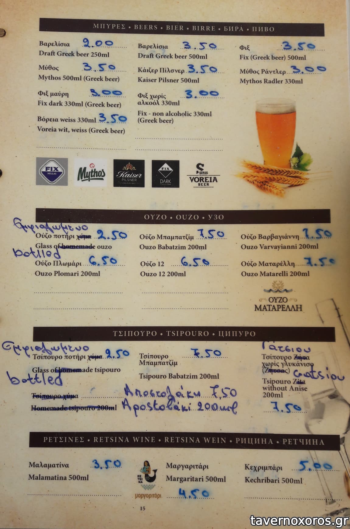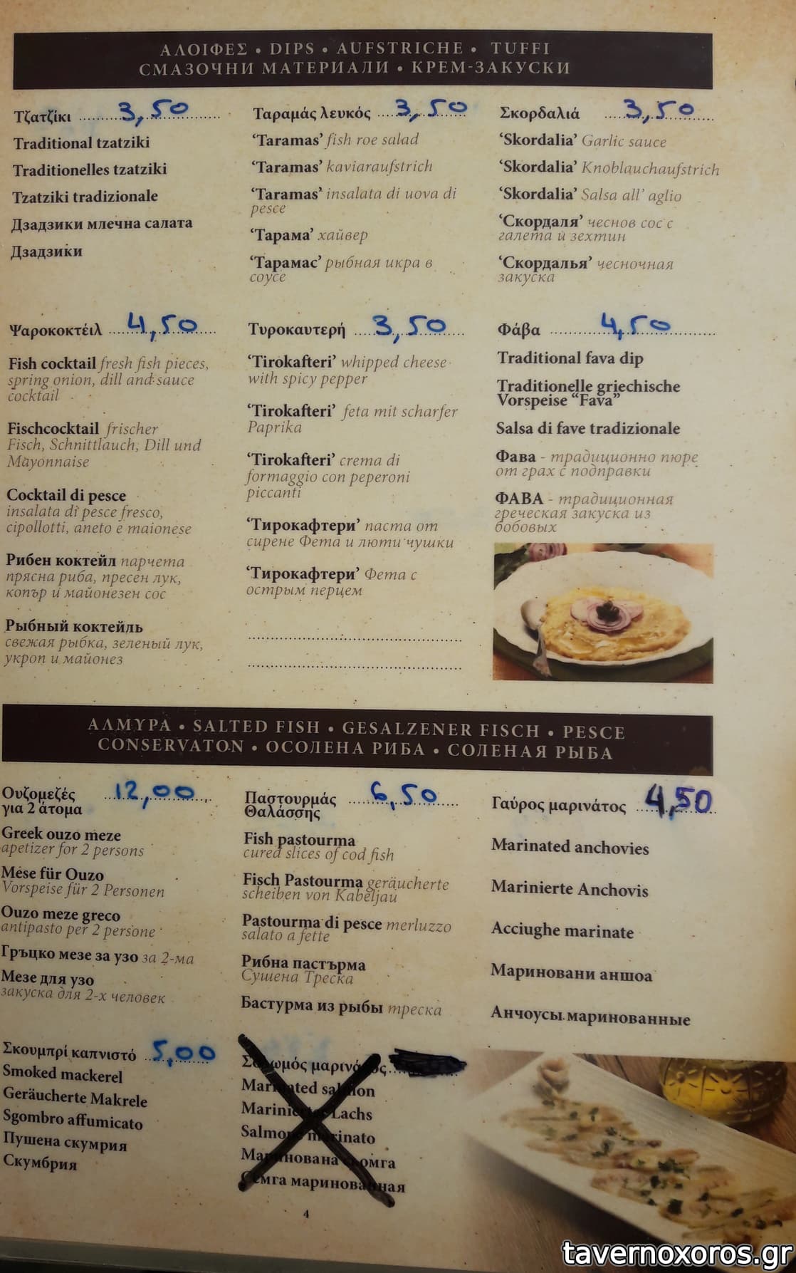 4 άτομα με μια ποικιλία ορεκτικών, 2κιλά ψάρι, 2 σαλάτες, 4 μπύρες μας βγήκε 180 ευρώ. Κέρασε γλυκά και φρούτα στο τέλος.