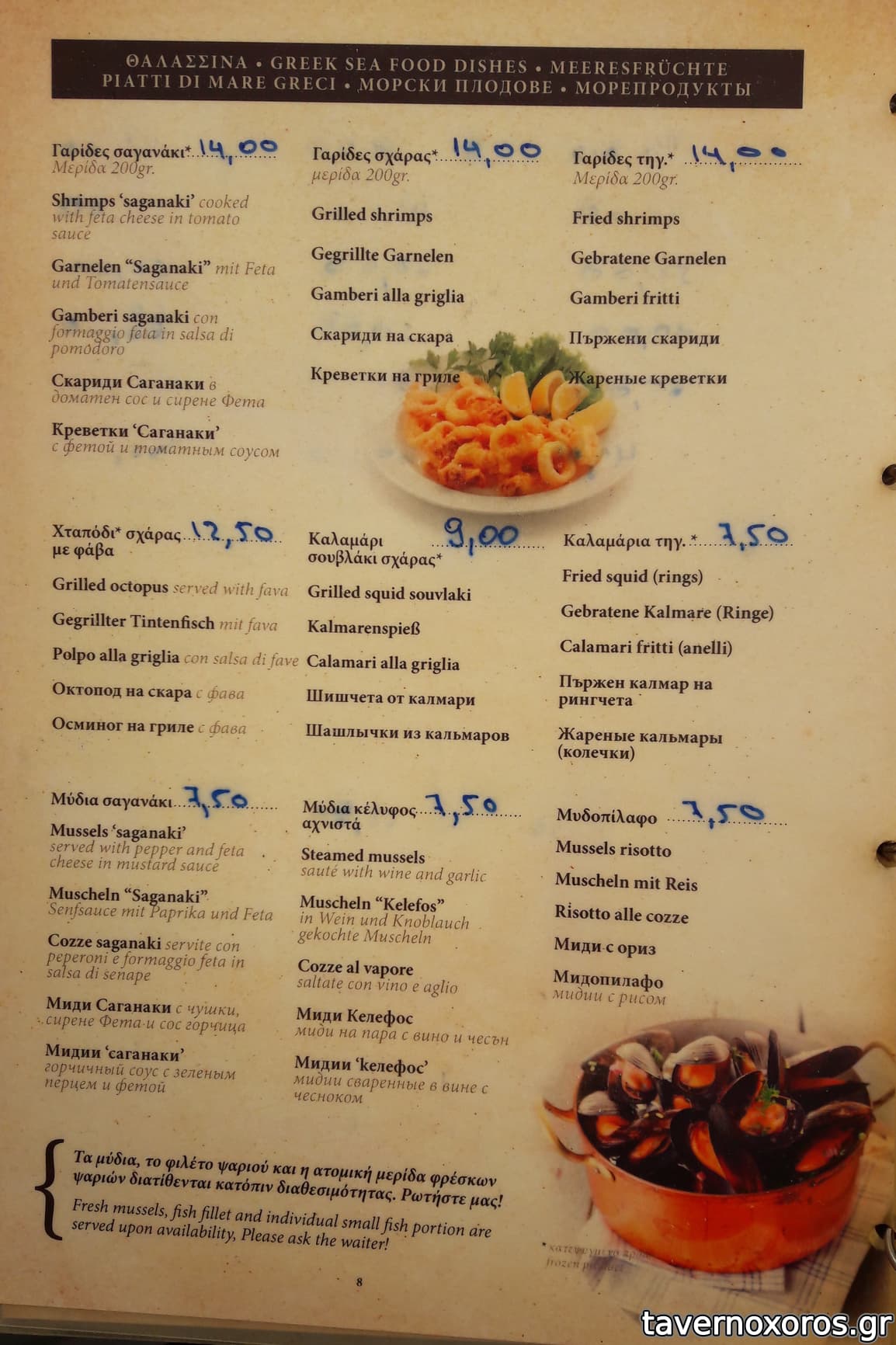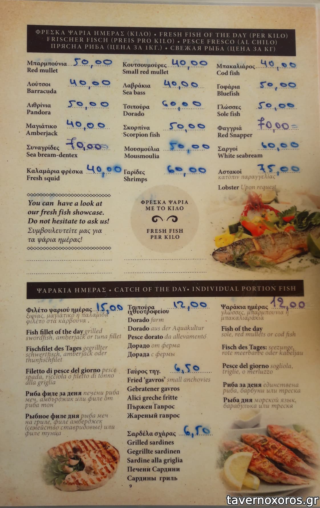 *τα ψαρικά/θαλασσινα του ήταν φρέσκα (μας έψησε μια σφυρίδα γύρω στα 5 κιλά πολύ πετυχημένα). την χρέωσε 80 ευρω το κιλό.