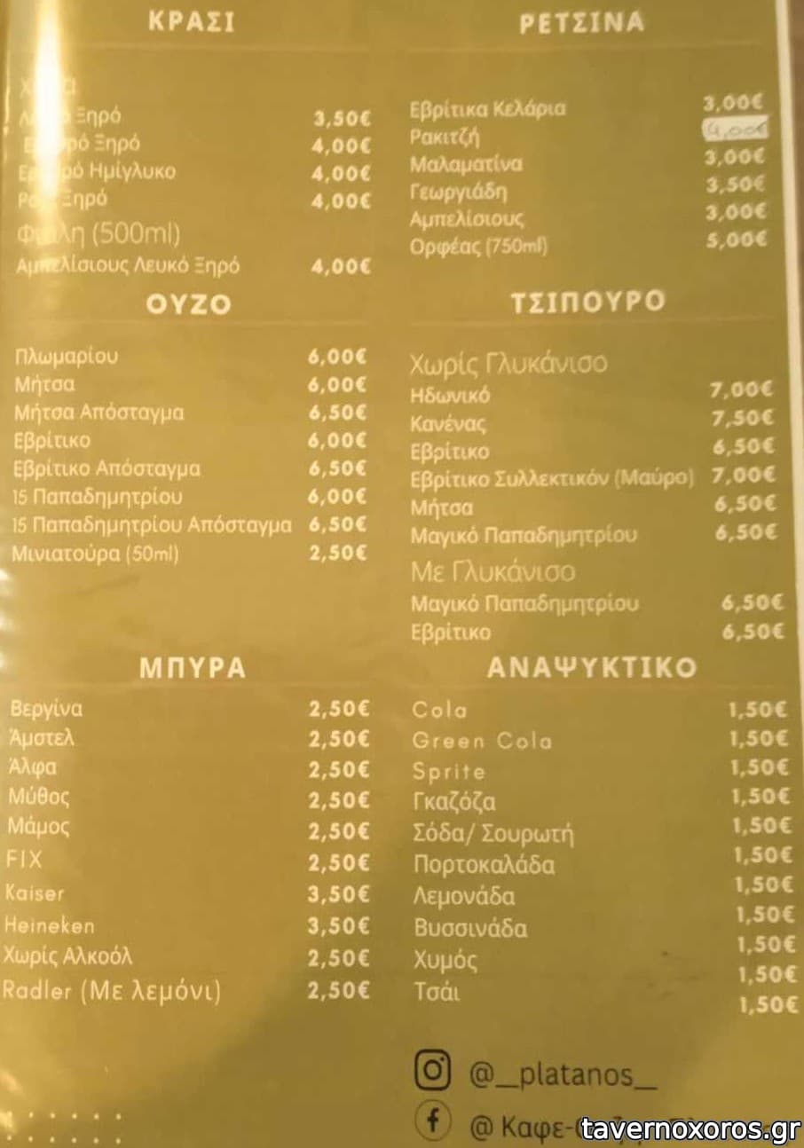 | Λέξεις κλειδιά | #κατάλληλο για παιδιά, #πλάτανος, #παιδική χαρά, #γρασίδι, #σκιά, #σουβλάκια, #μπιφτεκάκια, #πανσέτα, #λουκάνικο, #κοτόπουλο, #χοιρινή, #μοσχαρίσια μπριζόλα, #συκώτι, #πανσετομπριζόλα, #τηγανιά, #σνίτσελ, #μπιφτέκι γεμιστό, #παϊδάκια, #γάστρα, #κότσι, #γκιούλμπασι, #αρνάκι γάστρα, #ντάκος, #ρολάκια μελιτζάνας, #πάπρικα, #μανιτάρια, #κολοκυθάκια, #πιπεριές, #μελιτζάνα τηγανητή, #μπακαλιάρος σκορδαλιά, #χταπόδι, #γαύρος, #θράψαλα, #γαρίδες |