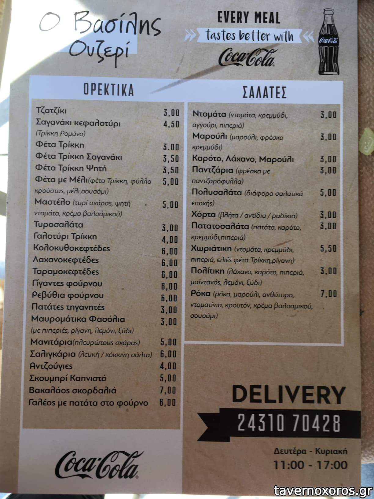 | Ώρες παραγγελίας | 11:00-17:00 |