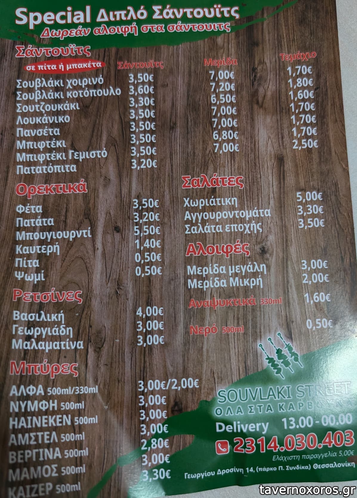 | Ώρες παραγγελίας | 13:00-01:00 |