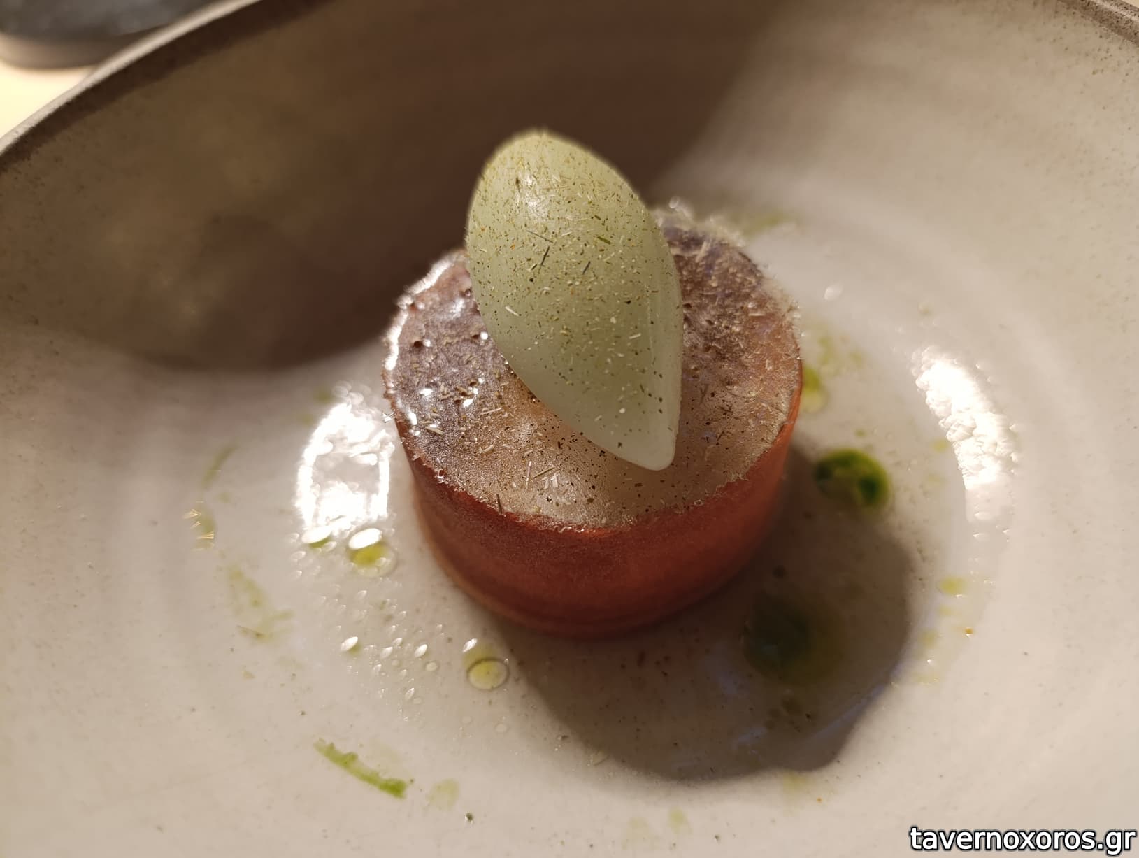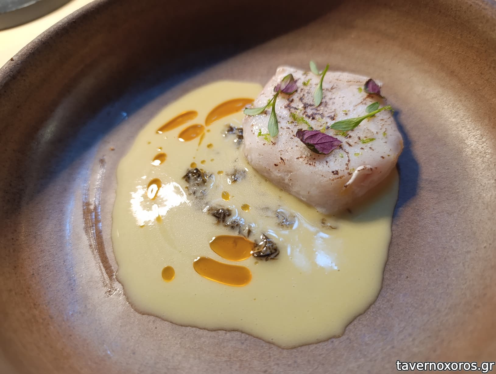 "Μπακαλιάρος: μπακαλιάρος confit/ beaurre blanc πράσα σε ζύμωση"