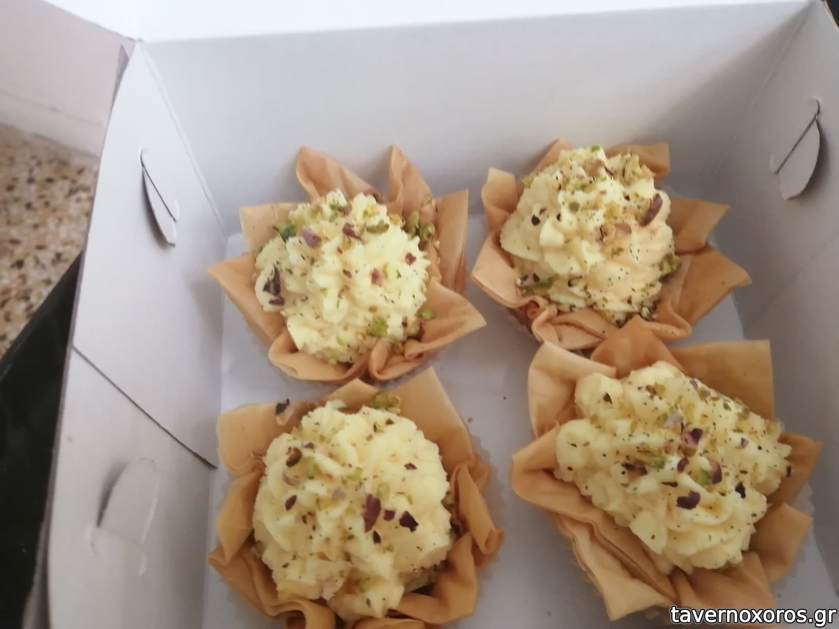 - Γαλακτοκουπάκι (φύλλο γεμισμένο με κρέμα πατισερί, μέλι, φιστίκι) εξαιρετικό.