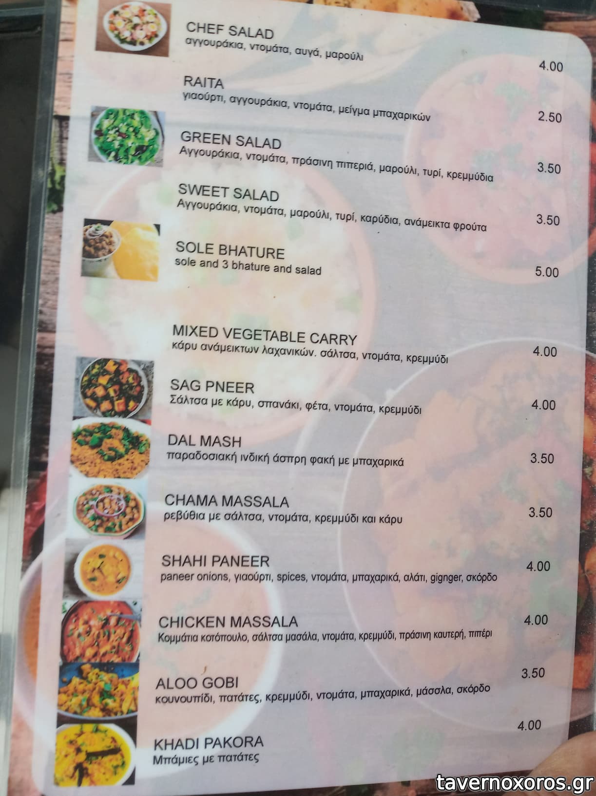 Πολύ νόστιμα όλα, μού άρεσαν πολύ και έτρωγα πάνω από 2 μέρες ινδικό. Tip: ιδανικά το τρώτε πάνω σε ρύζι ατμού ή ζυμαρικά, δυστυχώς δε δίνουν τίποτα απ' τα δύο (ρύζι δίνουν μόνο το μπιριάνι, εμένα δε μου ταιριάζει να το συνδυάζω με άλλα φαγητά). Κάθε μερίδα από 4ε, σύν. 8ε, μια χαρά.
