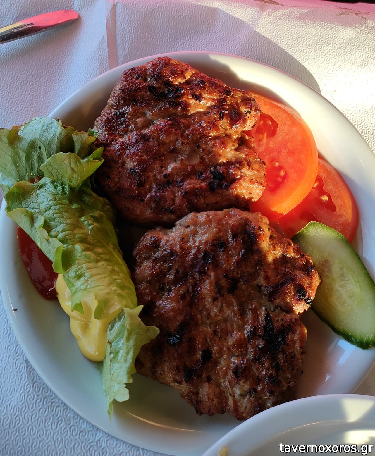 Ομοίως οι σαλάτες είχαν πολύ λίγο λάδι , οι τηγανισμένες πατάτες χοντροκομμένες, το ψωμί ήθελε λίγο περισσότερο φρυγανισμα .