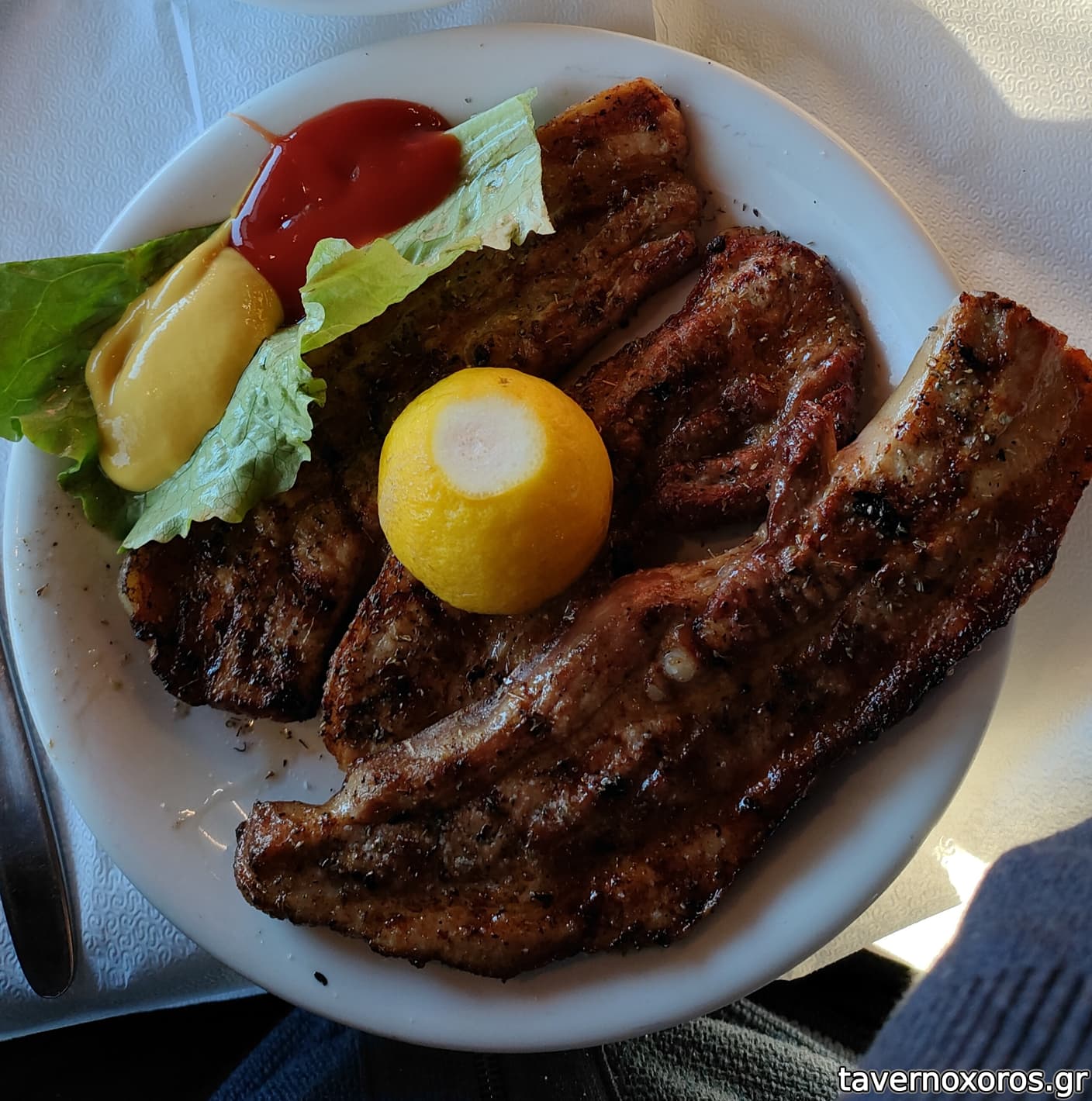 Πολύ καλό τό ἀρνάκι σούβλα καί καλό κρασί μπροῦσκο χύμα.