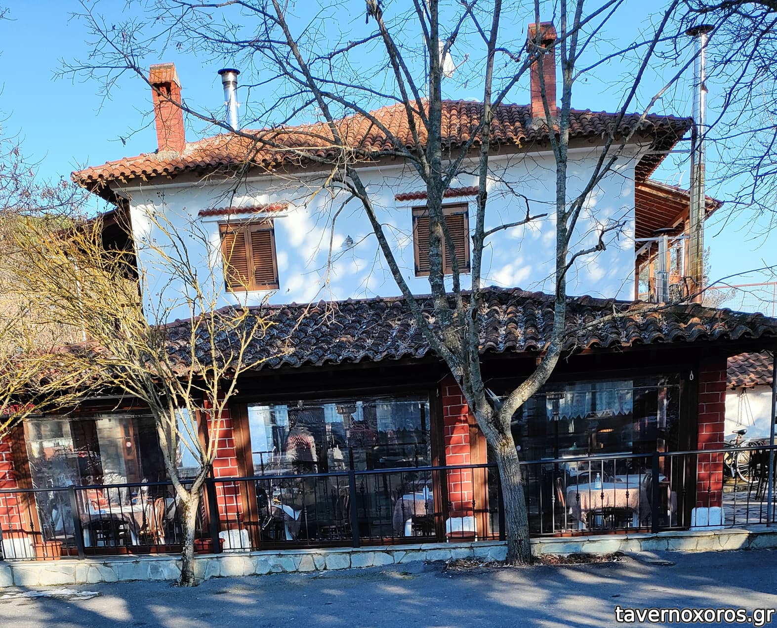 Ο στεγασμένος εξωτερικός ημιυπαιθριος- και σχετικά μικρότερος χώρος- ήταν πλήρης, με ωραία ζέστη μια και λειτουργούσε ενεργειακό τζάκι .