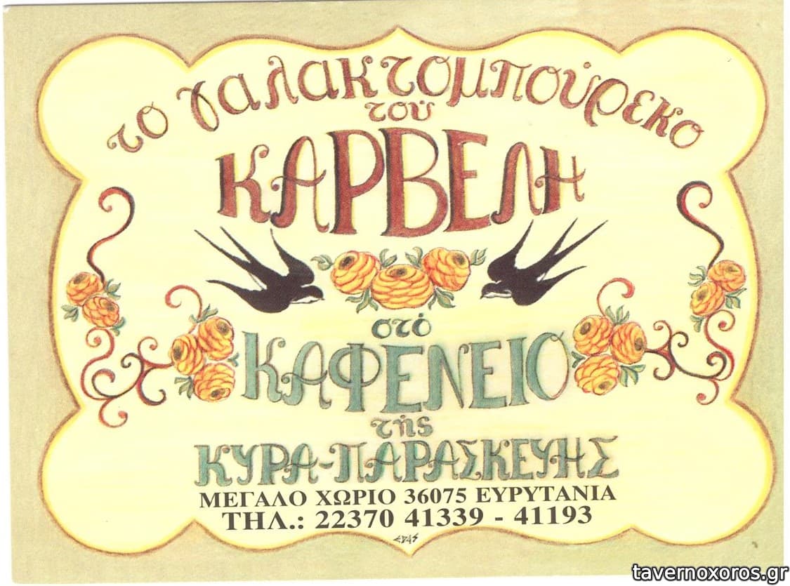 Το θυμάμαι κι εγώ αυτό το θεσπέσιο γαλακτομπούρεκο του Καρβέλη. Το καλύτερο γαλακτομπούρεκο που έφαγα σε ολόκληρη την Ελλάδα. Ζεστό, φρέσκο, τραγανό απ' έξω, αφράτο και ζουμερό μέσα, μυρωδάτο, να μοσχοβολάει κενέλα, βανίλια και κατσικίσιο βούτυρο. Πολύ ανώτερο από του Γαλυφιανάκη. Πολύς κόσμος τα τριήμερα, δύσκολα βρίσκεις τραπέζι.
