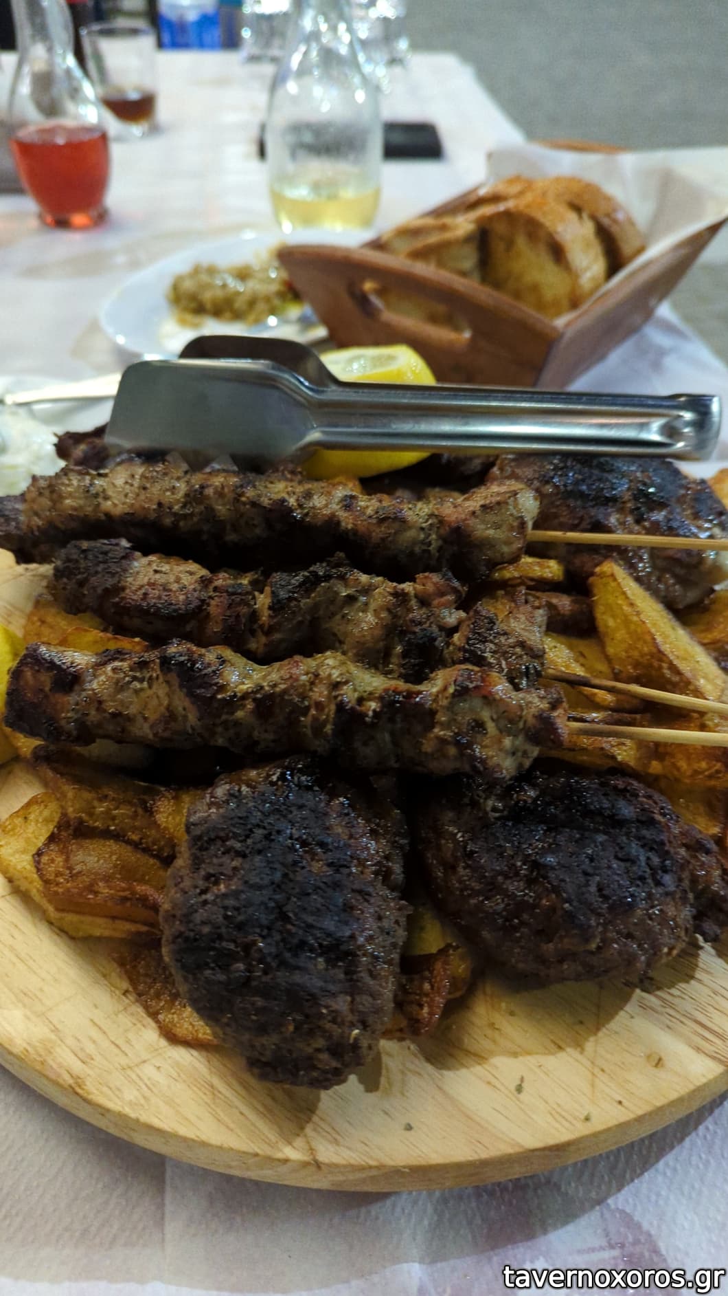 Σαλάτες παντζάρι και μαρούλι και καπνιστή μελιτζάνα, απλές αλλά νόστιμες, με δικά τους όλα τα ζαρζαβάτια. Φυσικά σκόρδο ολέ σε όλες! Τα κρέατα, ενώ στην αρχή τα φοβήθηκα λόγω του οτι φαινόταν αρπαγμένα, αποδείχθηκαν ζουμερά (σουβλάκια χοιρινά) και πολύ νόστιμα. Τα μπιφτέκια ήταν αφρός, κρεατένια είχαν κι ένα τσικ κύμινο (που προσωπικά δεν μ'