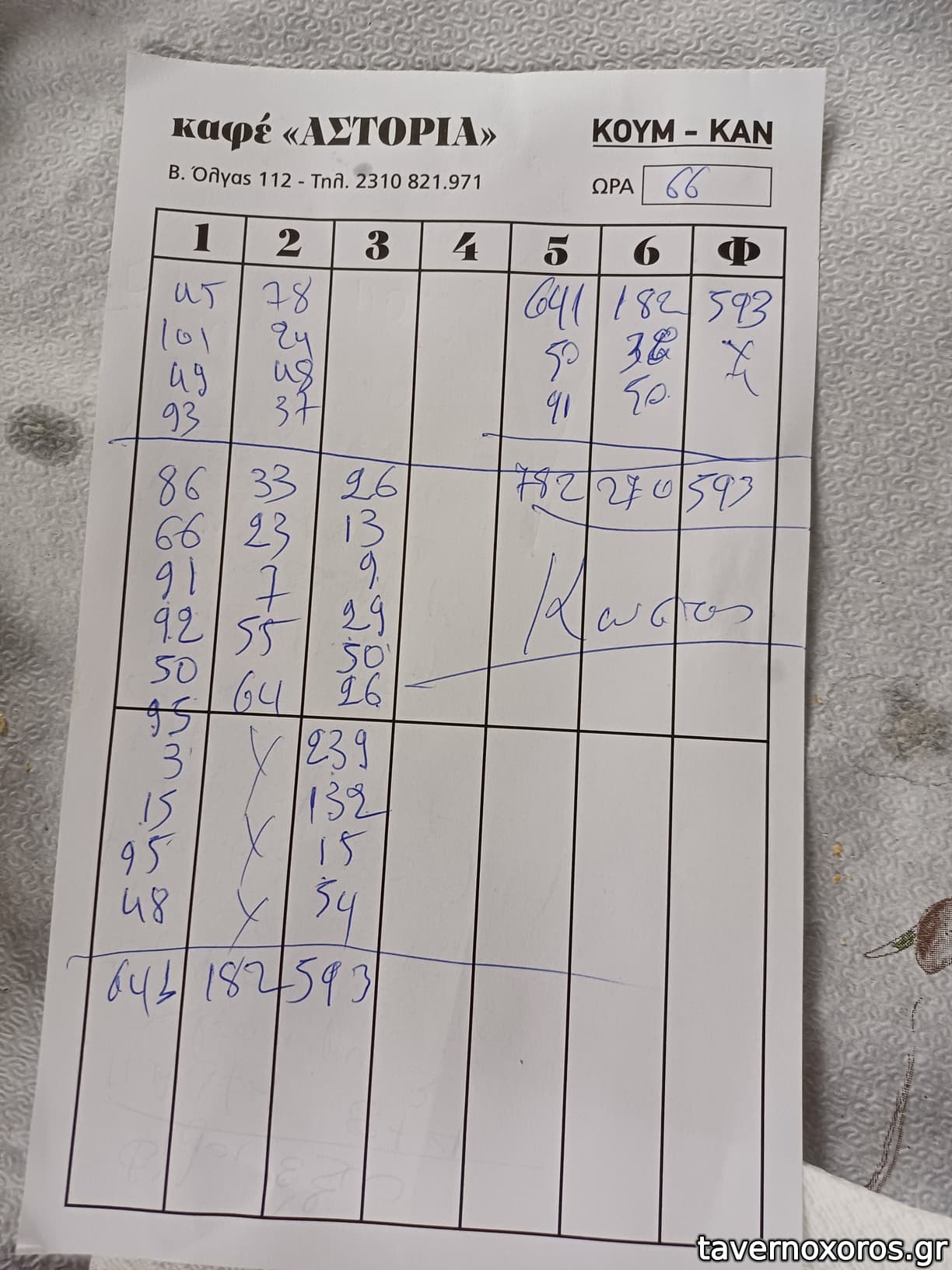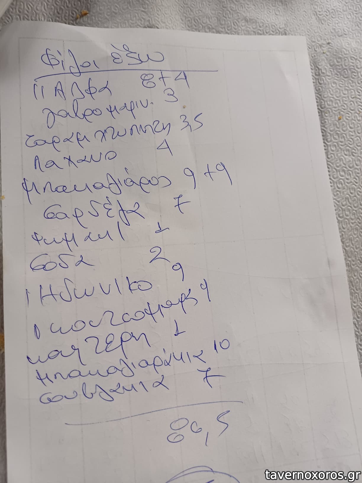 "23 10 χάνουμε στο σκορ" (πίσω όψη του λογαριασμού:)