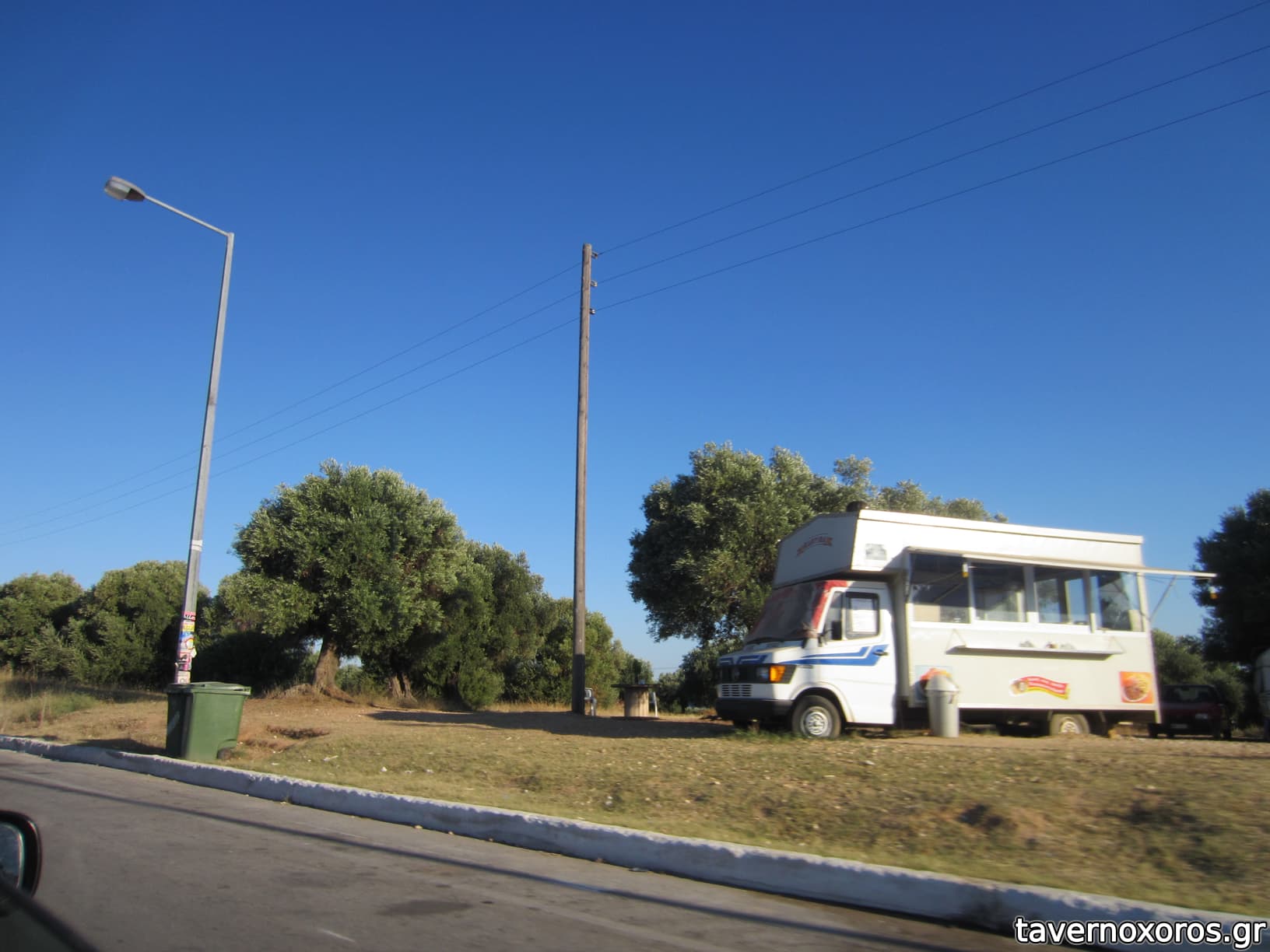 Κινητή καντίνα πάνω στη διασταύρωση για Πολύγυρο του δρόμου Ν. Μουδανιών-Νικήτης.