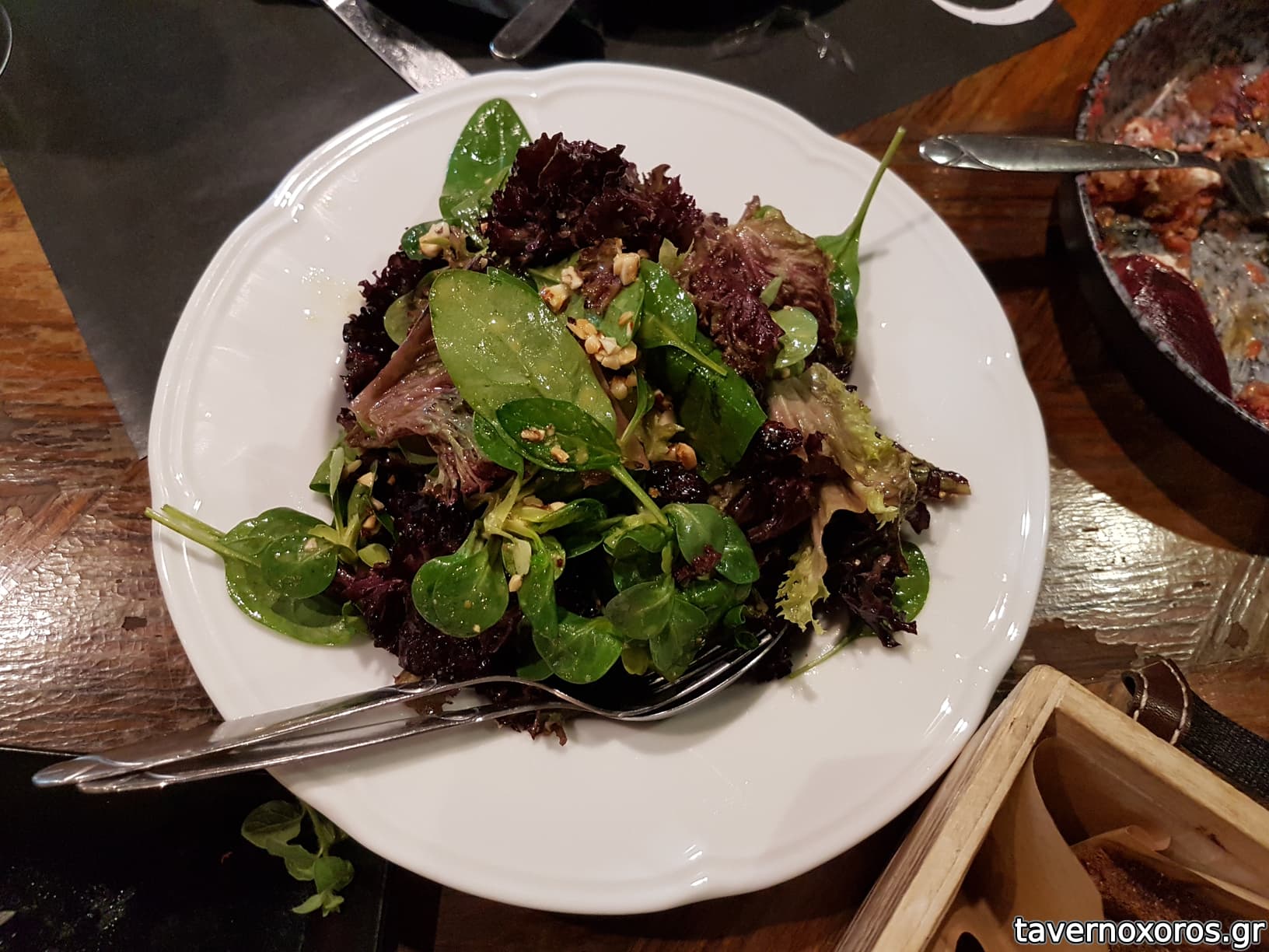 "Πράσινη σαλάτα με ξηρούς καρπούς & κράνα Ολύμπου" (οκ)