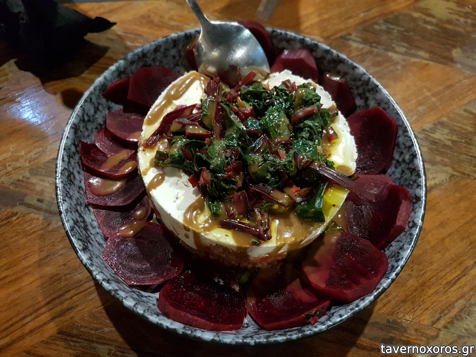 "Κρητικός ντάκος τούρτα με κατίκι Δομοκού & παντζαρόφυλλα" (οκ)