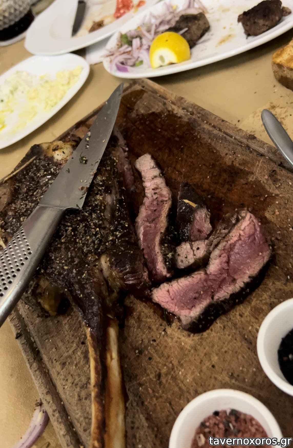 Εξαιρετικό ψήσιμο, σιτεμένη η μπριζόλα. (Θα την ήθελα με λιγότερες ίνες, αλλά η γεύση της ήταν καταπληκτική).