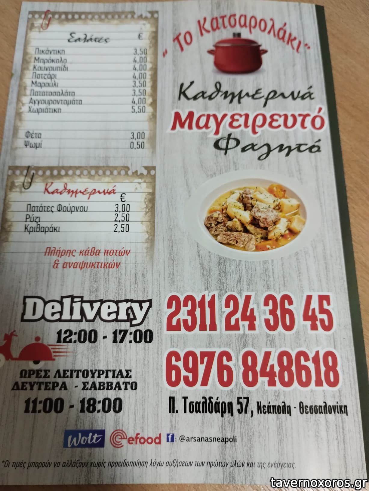 Πλέον το Αρσανάς έχει γίνει πρώην και έχει φύγει, και έχει μείνει το Κατσαρολάκι. (Όμως νομίζω ο κύριος είναι ο ίδιος. Συμπαθής)