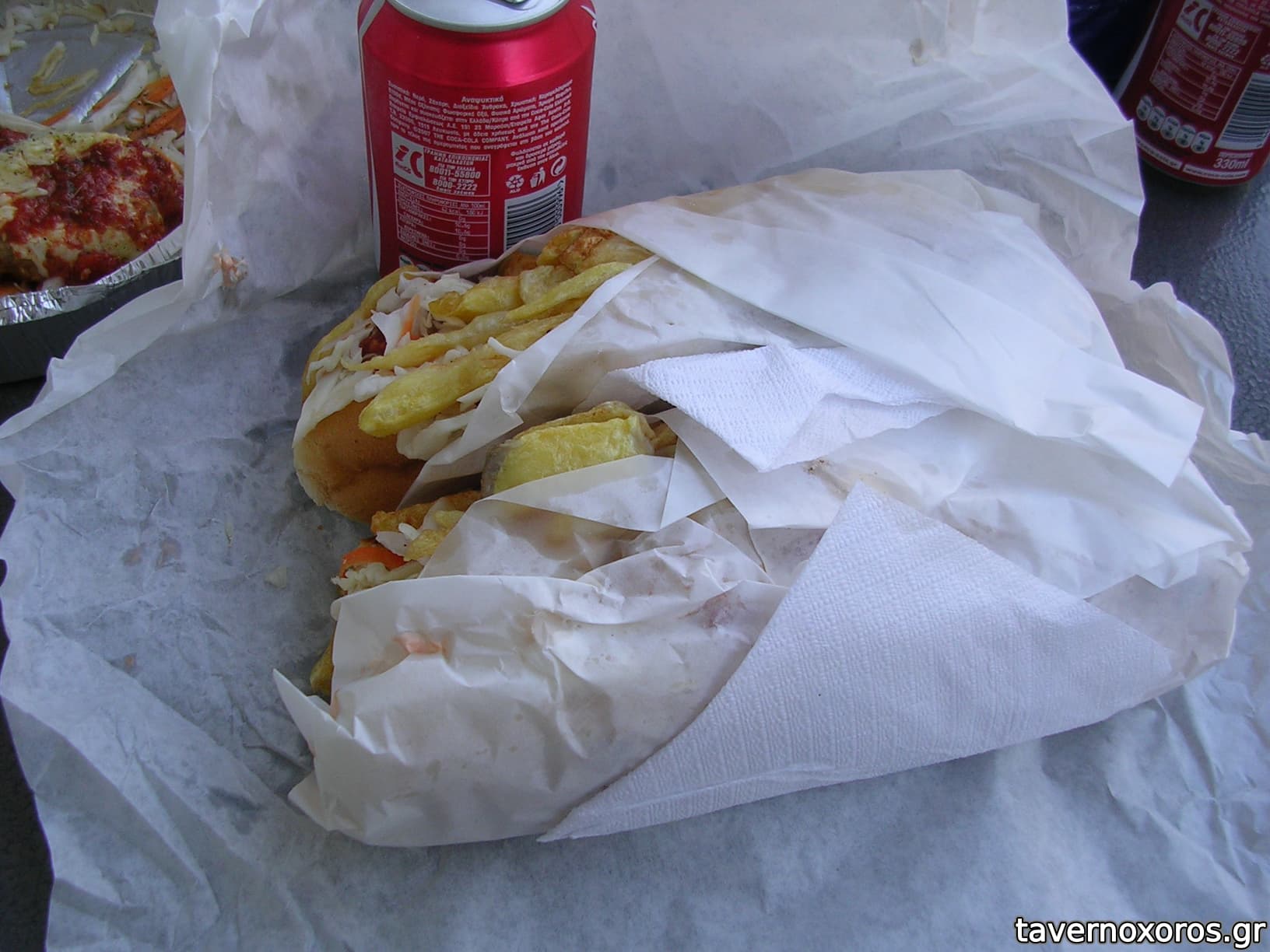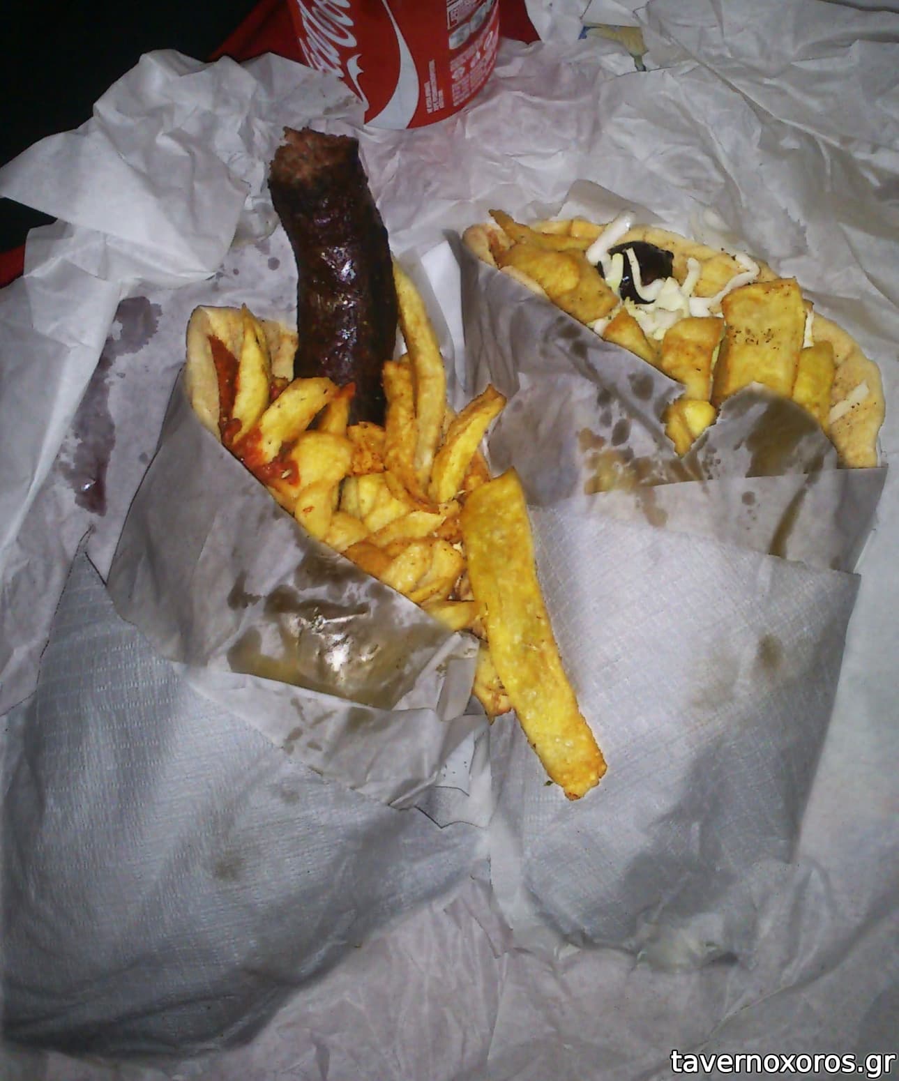 -Πιτα Λουκανικο τζουμαγιας (πικαντικο). Σουπερ νοστιμο κι αυτο. Το τηγανιζει, σε αντιθεση με το χωριατικο που το ψηνει. 2 κομματια στην πιτα. Με τις σπεσιαλ σως του που απογειωνουν το σαντουιτς.