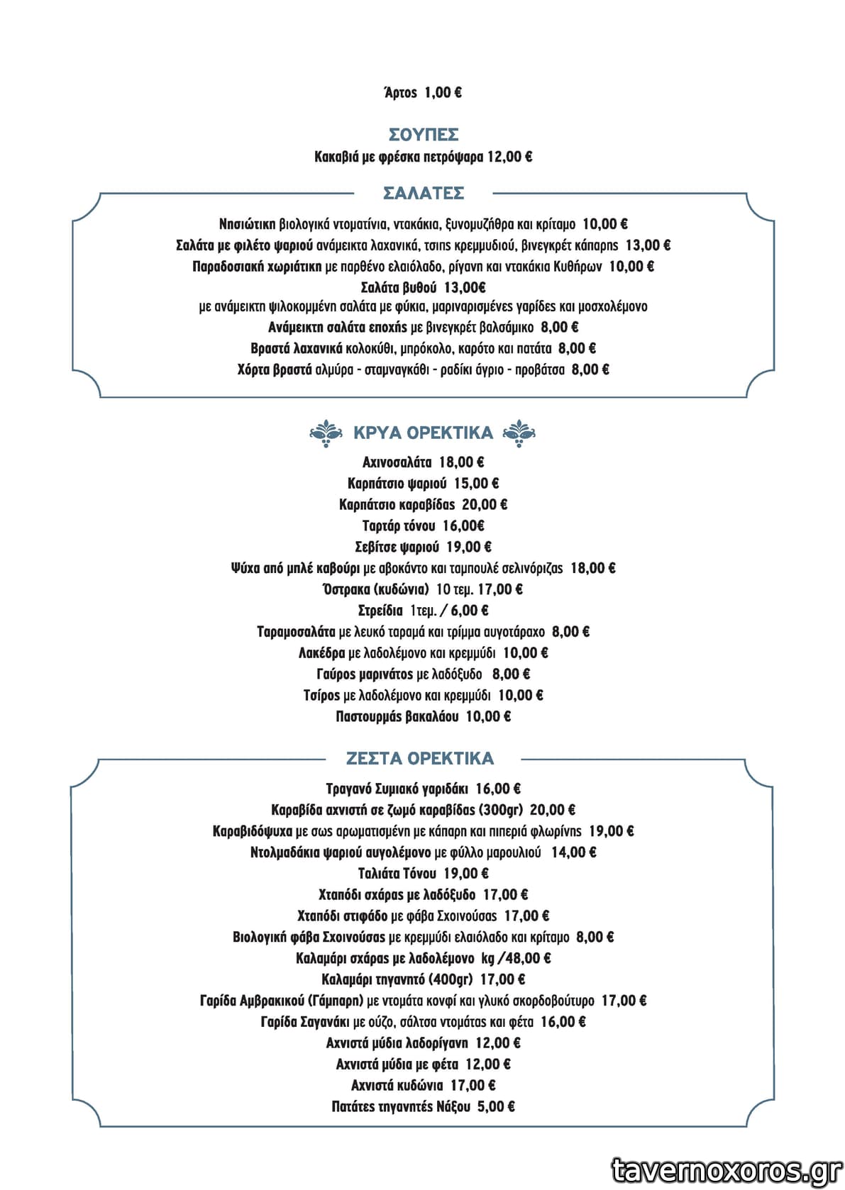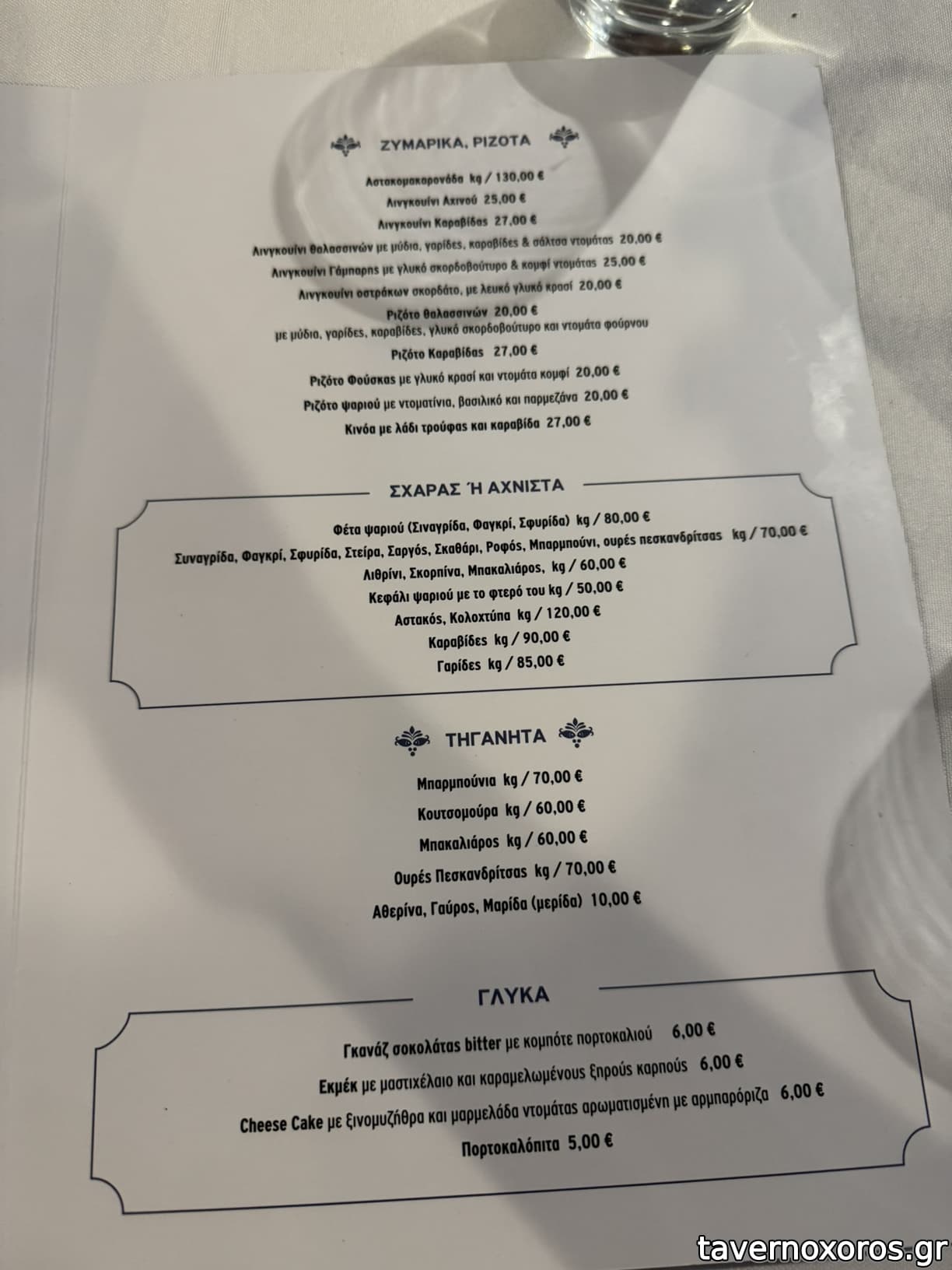 | Λέξεις κλειδιά | #ψαρόσουπα, #σεβίτσε, #γαύρος μαρινάτος, #χταπόδι στιφάδο, #φάβα, #κυδώνια, #ζυμαρικά, #ριζότο, #ξινομυζήθρα, #αχινοσαλάτα, #όστρακα, #γάμπαρη, #μπακαλιάρος, #κουτσομούρες, #μπαρμπούνια, #χταπόδι, #αθερίνα, #γαύρος, #μαρίδα, #πεσκανδρίτσες, #γαρίδες, #καραβίδες, #μύδια, #ριζότο, #αστακομακαρονάδα, #κωλοχτύπες, #εκμέκ, #πορτοκαλόπιτα |