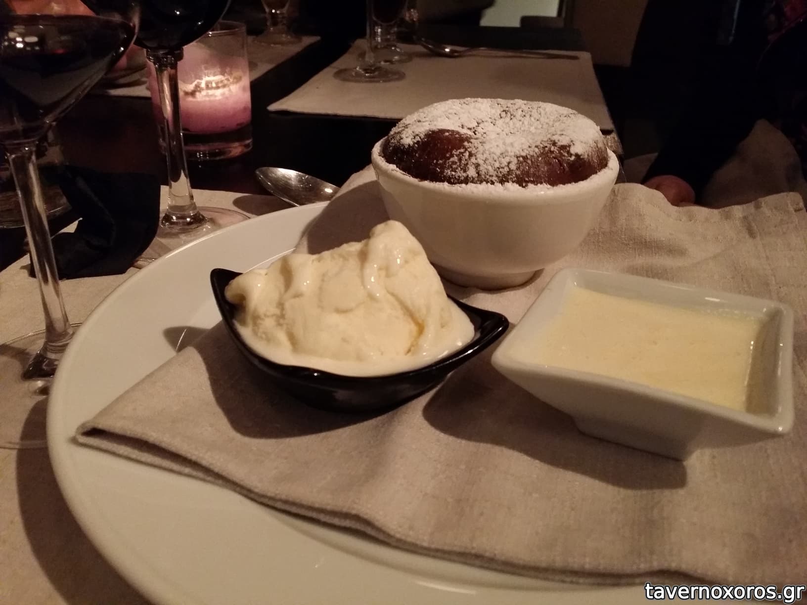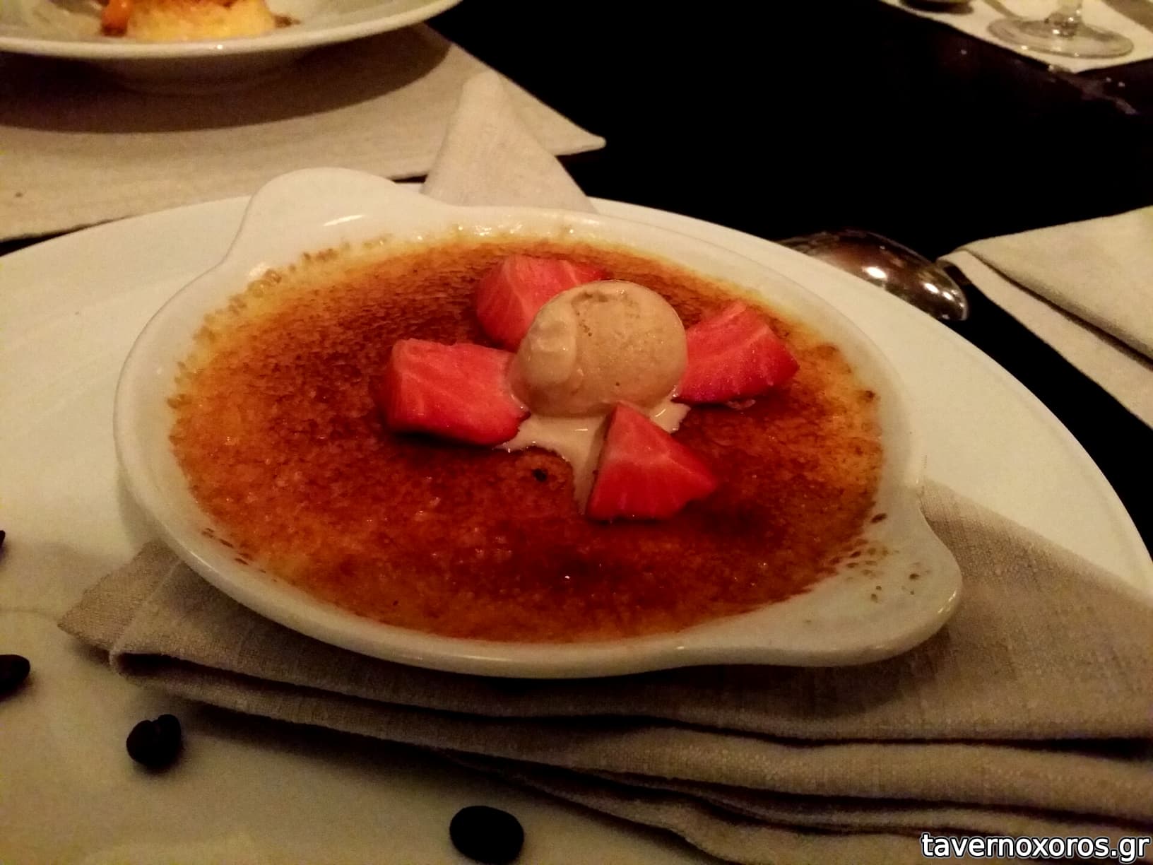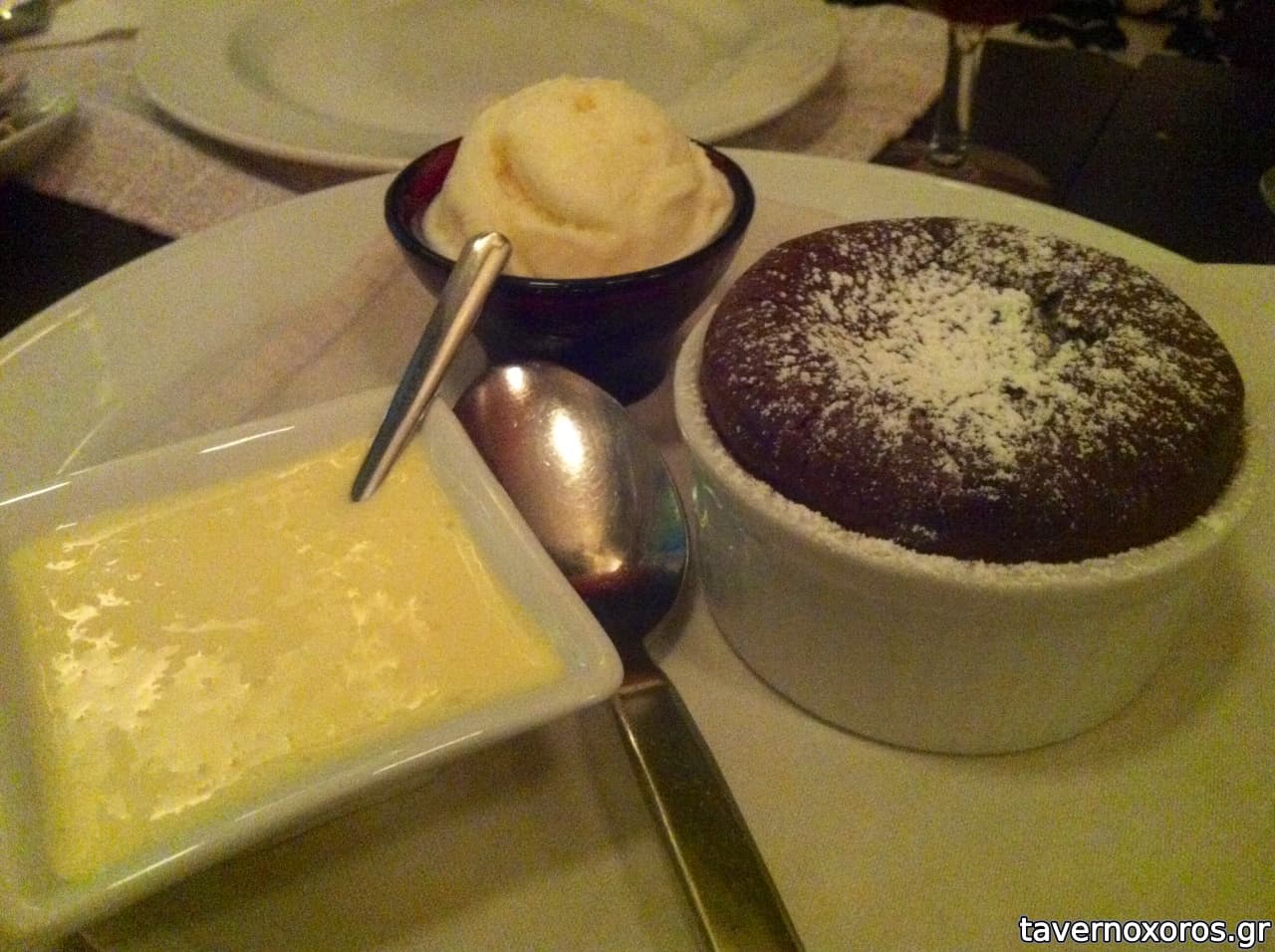 *γλυκά-πολύ καλή η creme brulee με γρανίτα από φράουλα, και το σουφλέ σοκολάτας ικανοποιητικό.