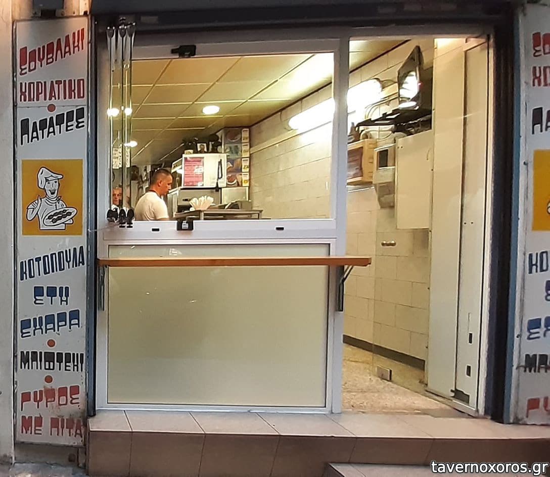 μονο γυρος, σουβλακι χοιρινο και κοτοπουλο και πατατα ολα χειροποιητα. πολυ νοστιμος ο γυρος που τον ψηνει σε μια περιεργη σουβλα με ενα γυαλινο πορτακι. δυστυχως λογω φορτου εργασιας σηνηθως δεν ειναι ξεροψημενος. παρ ολα αυτα ειναι απο τις σπανιες περιπτωσεις πια, που θα φας γυρο ''παλιας κοπης''. με το αθηναικο μεγεθος τουλαχιστον 3 για να χορτασεις.