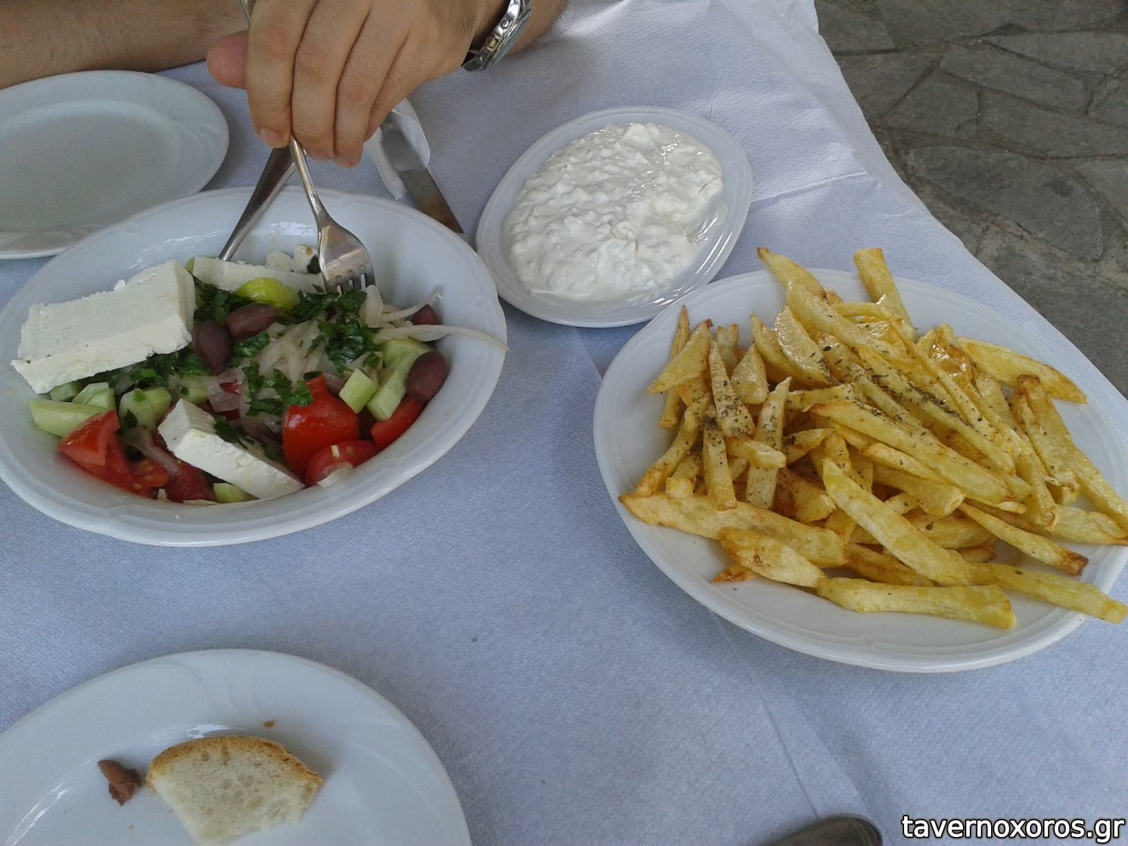 Χωριάτικη, τζατζίκι, τηγανητές πατάτες