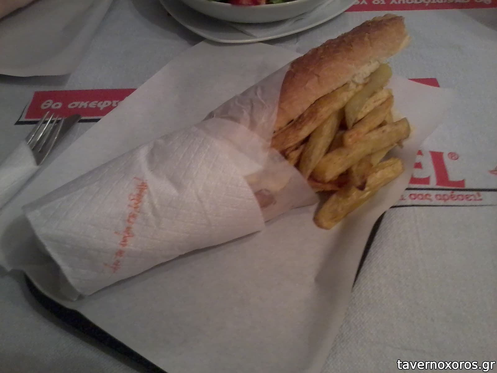 Από οικονομικής άποψης συμφέρει η μπαγκέτα (είναι θηριώδες σάντουιτς, τρως το μισό το μεσημέρι και το άλλο μισό το βράδυ. Αν θες βάζεις και δυο διαφορετικά κρέατα μέσα). Οι μερίδες συνοδεύονται με ψωμάκι (ή πίτα) ντομάτα, κρεμμύδι, πατάτες, και σαλάτα (μερικές φορές) Τέλος θα ήθελα να επιβεβαιώσω πως η χτυπητή του (χειροποίητη) είναι πολύ νόστιμη αλλά δεν καίει (βάζω μπούκοβο).