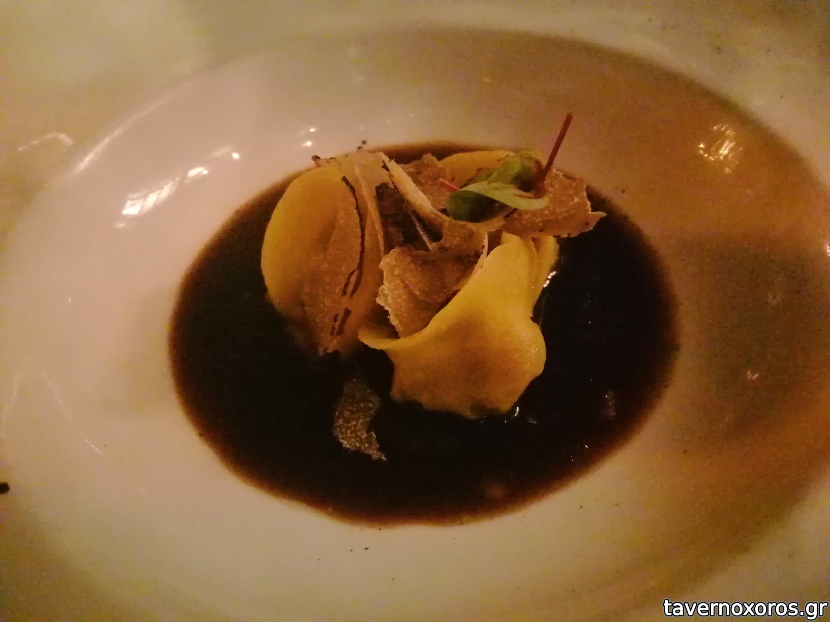 Ραβιόλι με κάστανο/κανθαρέλλες/μαύρη τρούφα/δενδρολίβανο