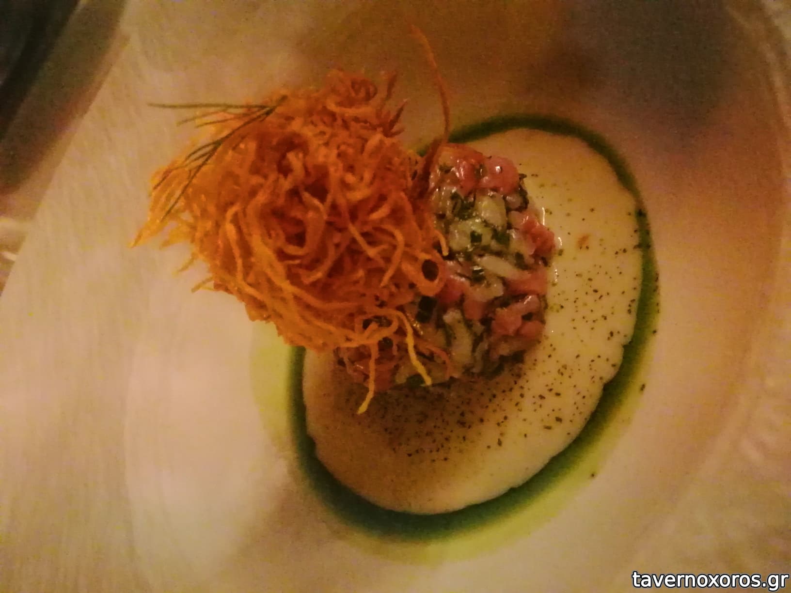 Ταρτάρ γιουβαρλάκι/μοσχαράκι Ω3/αυγολέμονο/μάραθος