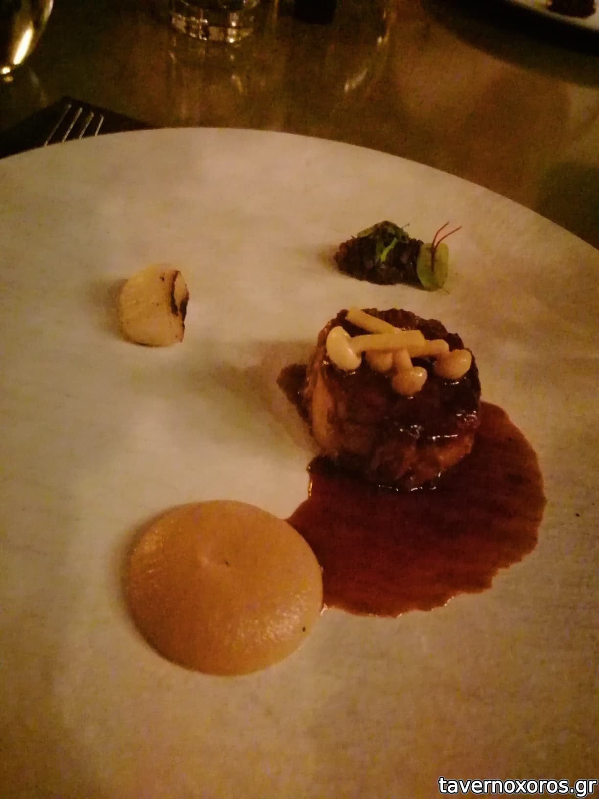 Υποκειμενικά το πιο αδύναμο πιάτο ήταν το κυρίως με τον μαύρο χοίρο όπου η πρώτη ύλη δεν προδιαθέτει για πιάτο κορύφωσης εορταστικού μενού.