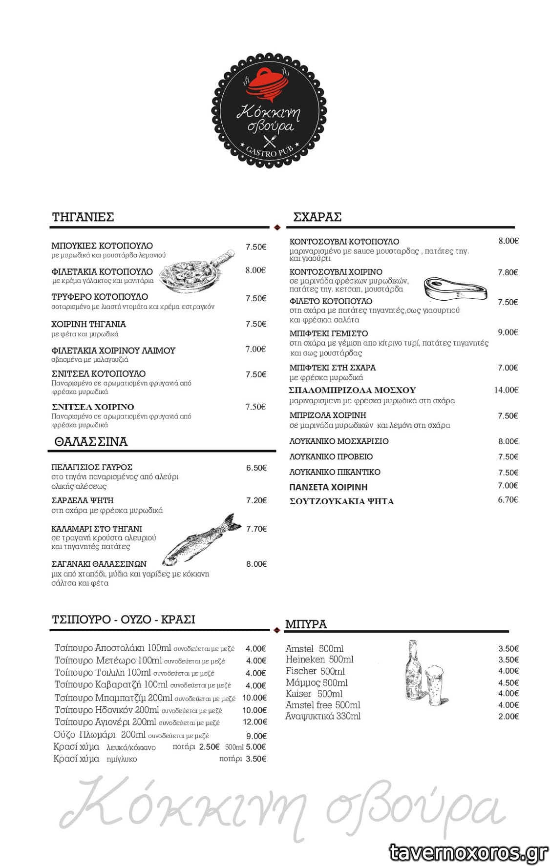 Δοκιμάστηκαν: μιλφέιγ λαχανικών, ντάκος, καλαμάρι τηγανητό (αφράτο, με καλής ποιότητας λάδι και συνοδεύομενο με πατάτα χεράτη), τσίπουρο με μεζέ, κοπανιστή. Όλα εξαιρετικά και κόστισαν λιγότερο από 30 €.
