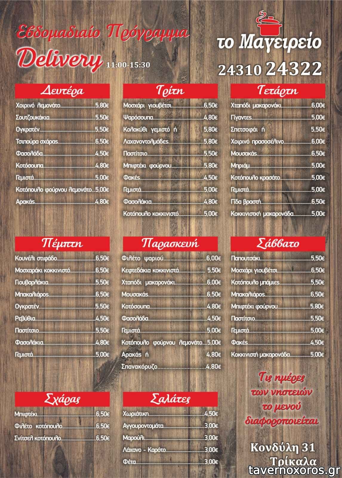| Λέξεις κλειδιά | #σπεντζοφάι, #λεμονάτο, #γεμιστά, #παστίτσιο, #χοιρινό πρασοσέλινο, #μπιφτέκι, #φασολάδα, #κοτόσουπα, #σνίτσελ, #μουσακάς, #γιουβέτσι, #σουτζουκάκια σμυρνέικα, #κοτόπουλο, #φασολάκια, #κοκκινιστό, #ψαρόσουπα, #μακαρονάδες, #χταπόδι, #φασόλια γίγαντες, #γίδα βραστή, #μπακαλιάρος, #ρεβύθια, #γιουβαρλάκια, #κουνέλι στιφάδο, #παπουτσάκια, #κεφτεδάκια, #φιλετάκια κοτόπουλο |