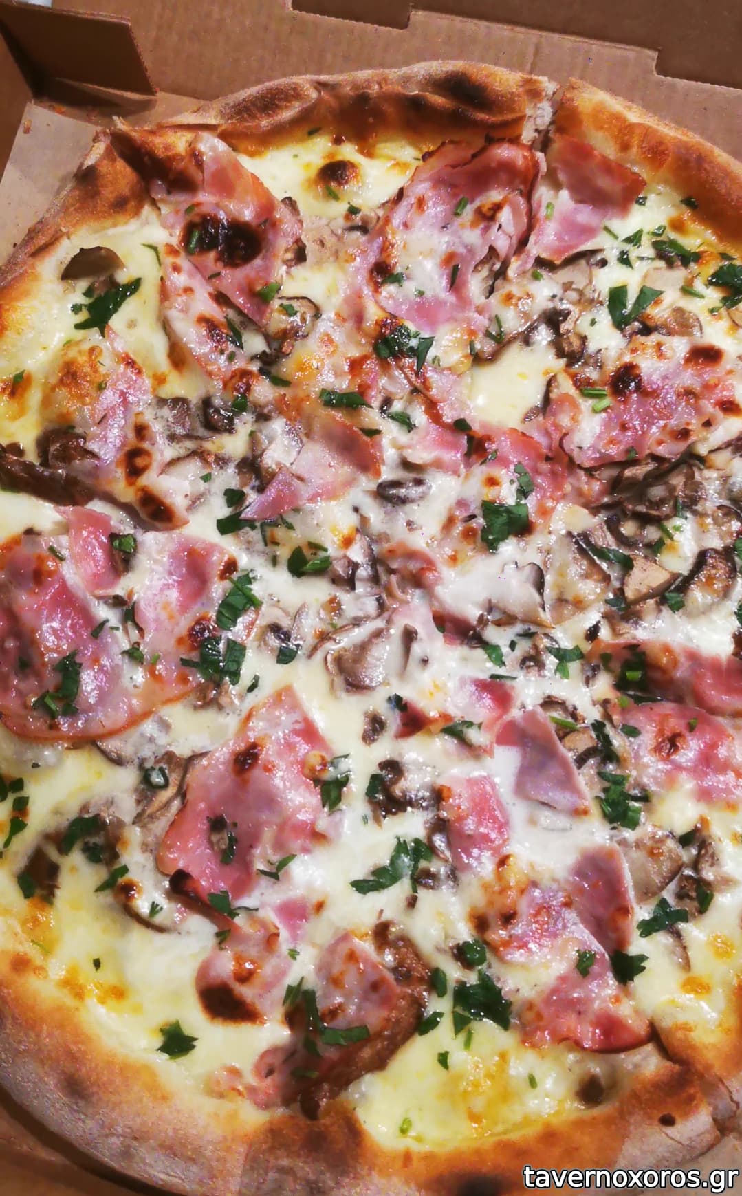 Η πίτσα καρμπονάρα είναι ΟΛΑ τα λεφτά, και ο μαϊντανός ο αποξηραμένος την απογειώνει. 10/10