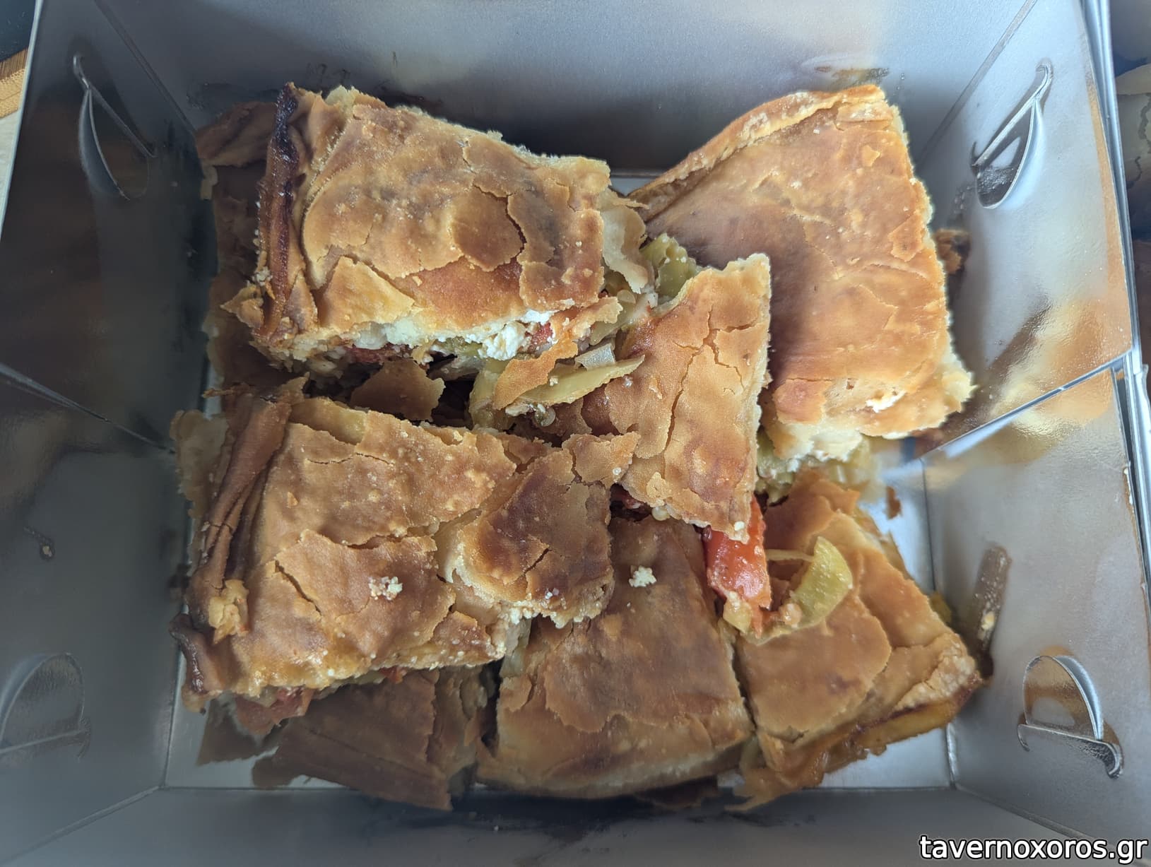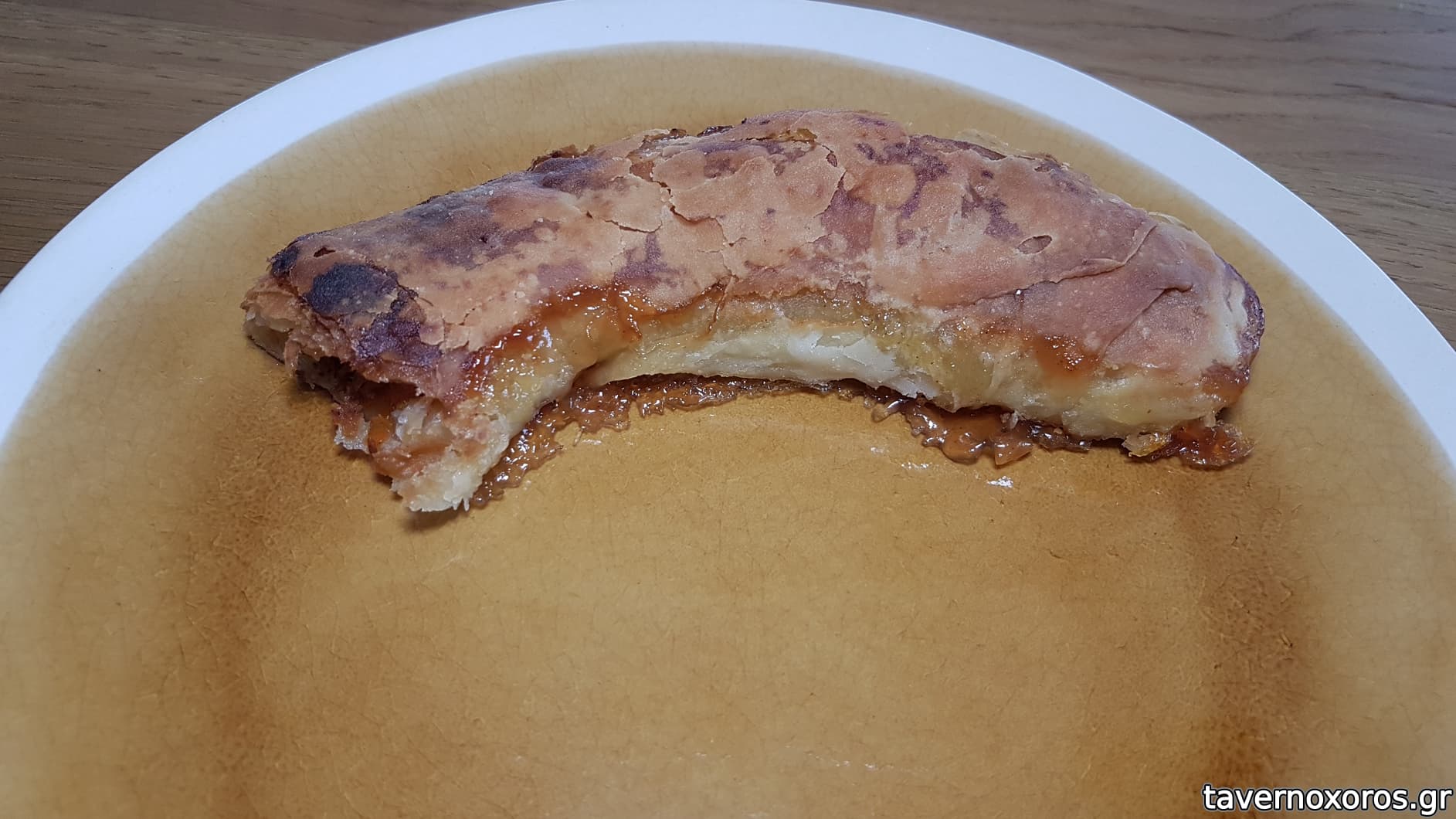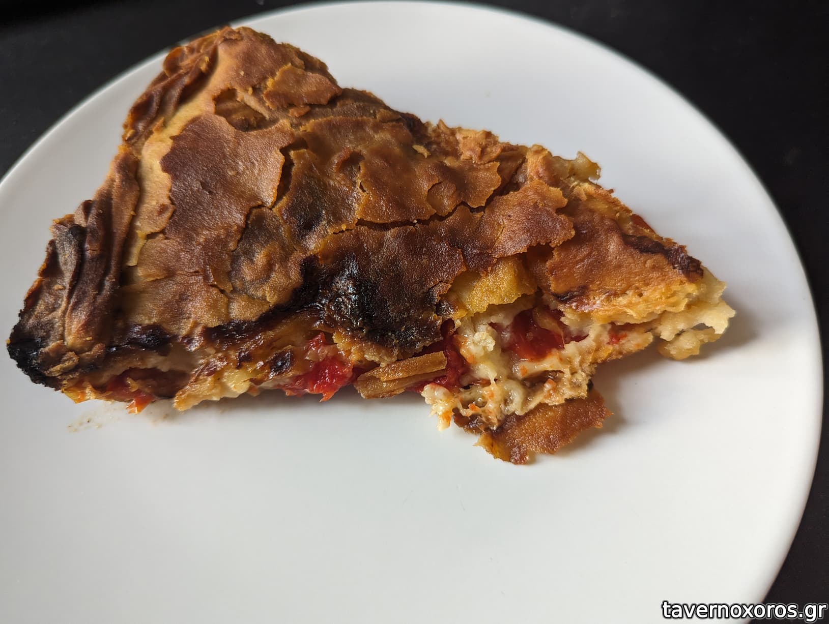 Ντοματόπιτα (οκ, αλλά το φύλλο μέτριο, λαδερό και καμένο σε σημεία)