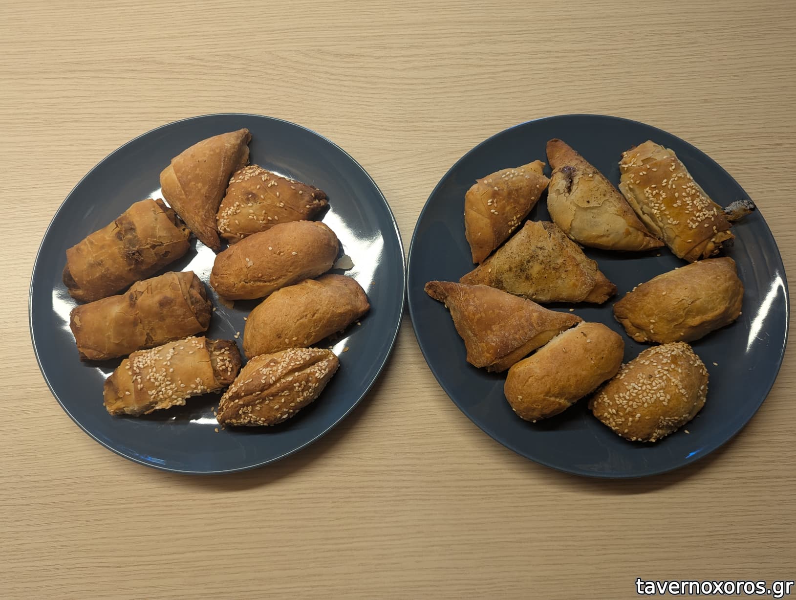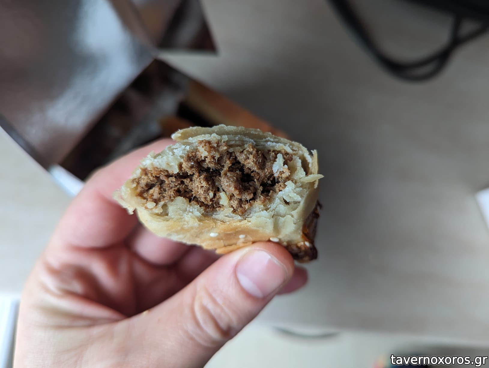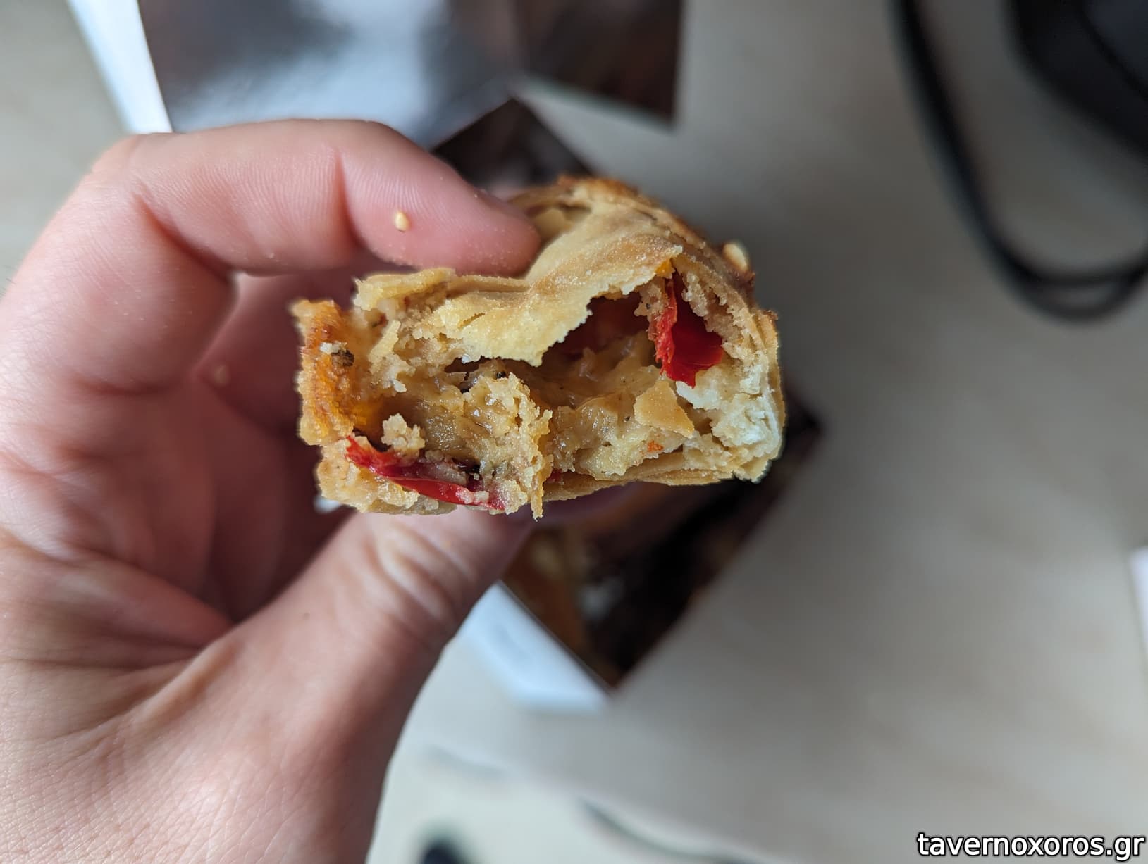 Με φορά ρολογιού: πιτάκι με κιμά (οκ) & πιτάκι με κοτόπουλο (πολύ καλό) & πιτάκι με μελιτζάνα (πολύ καλό) & στριφτή με πράσο (οκ) & πιτάκι με ντομάτα (οκ)