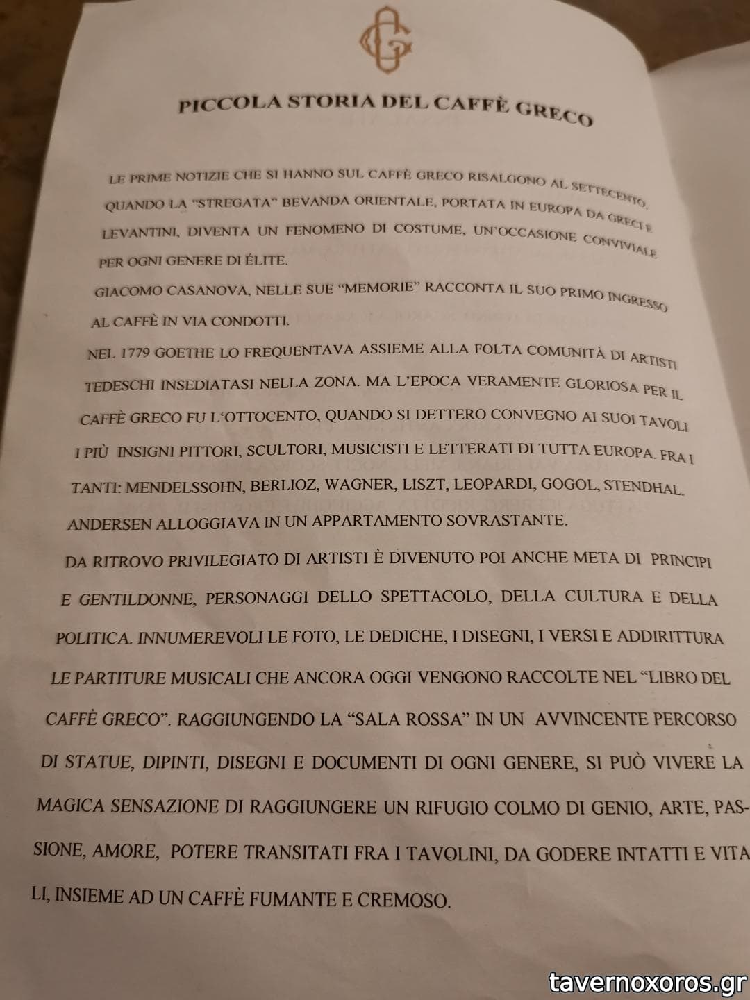 Ένα καφέ σύμβολο της Αιώνιας Πόλης που ακόμα και σήμερα διατηρεί το ξεχωριστό και μοναδικό του στυλ και φιλοξενεί πάμπολλα έργα τέχνης στις τέσσερις αίθουσες του.