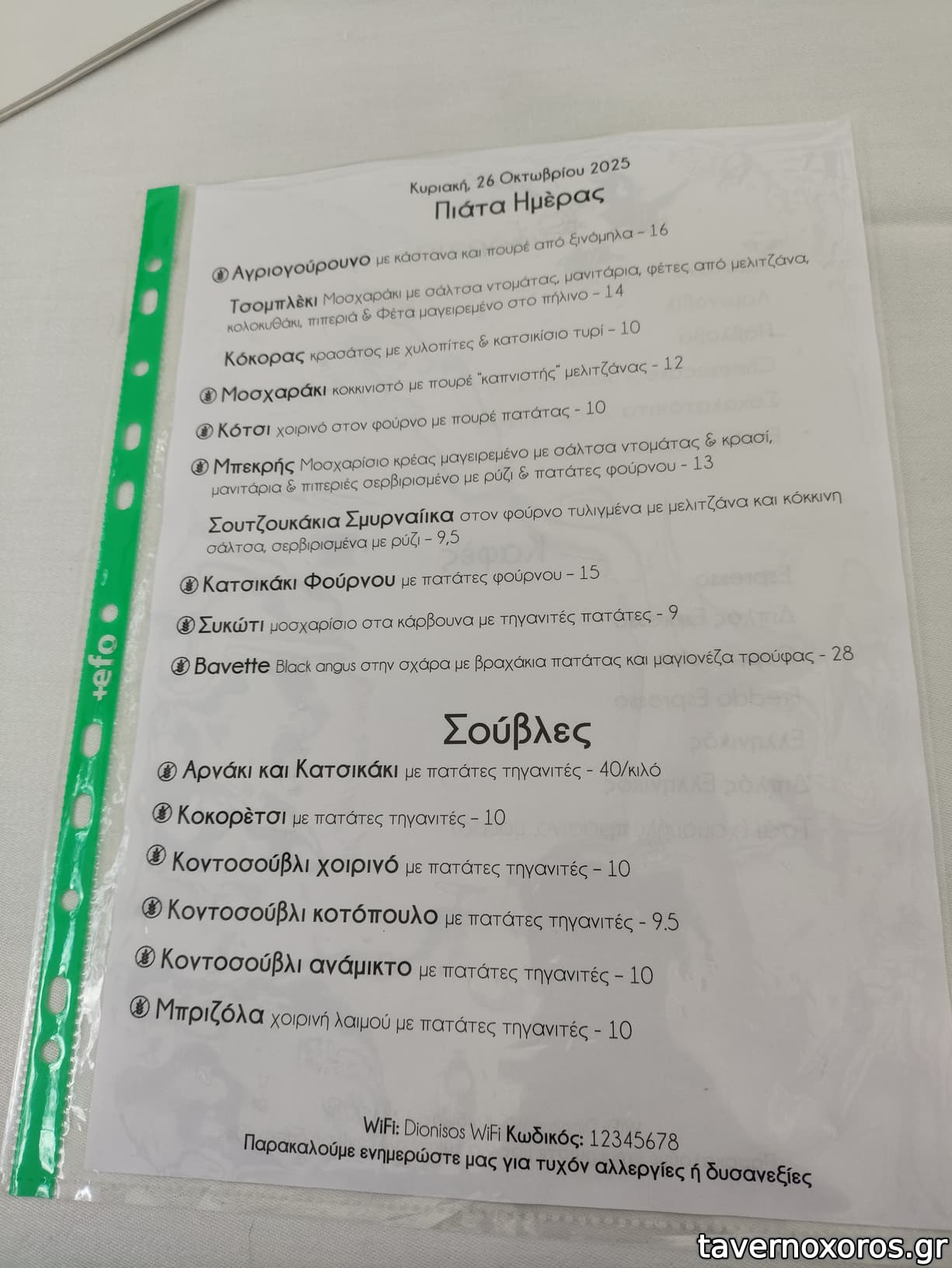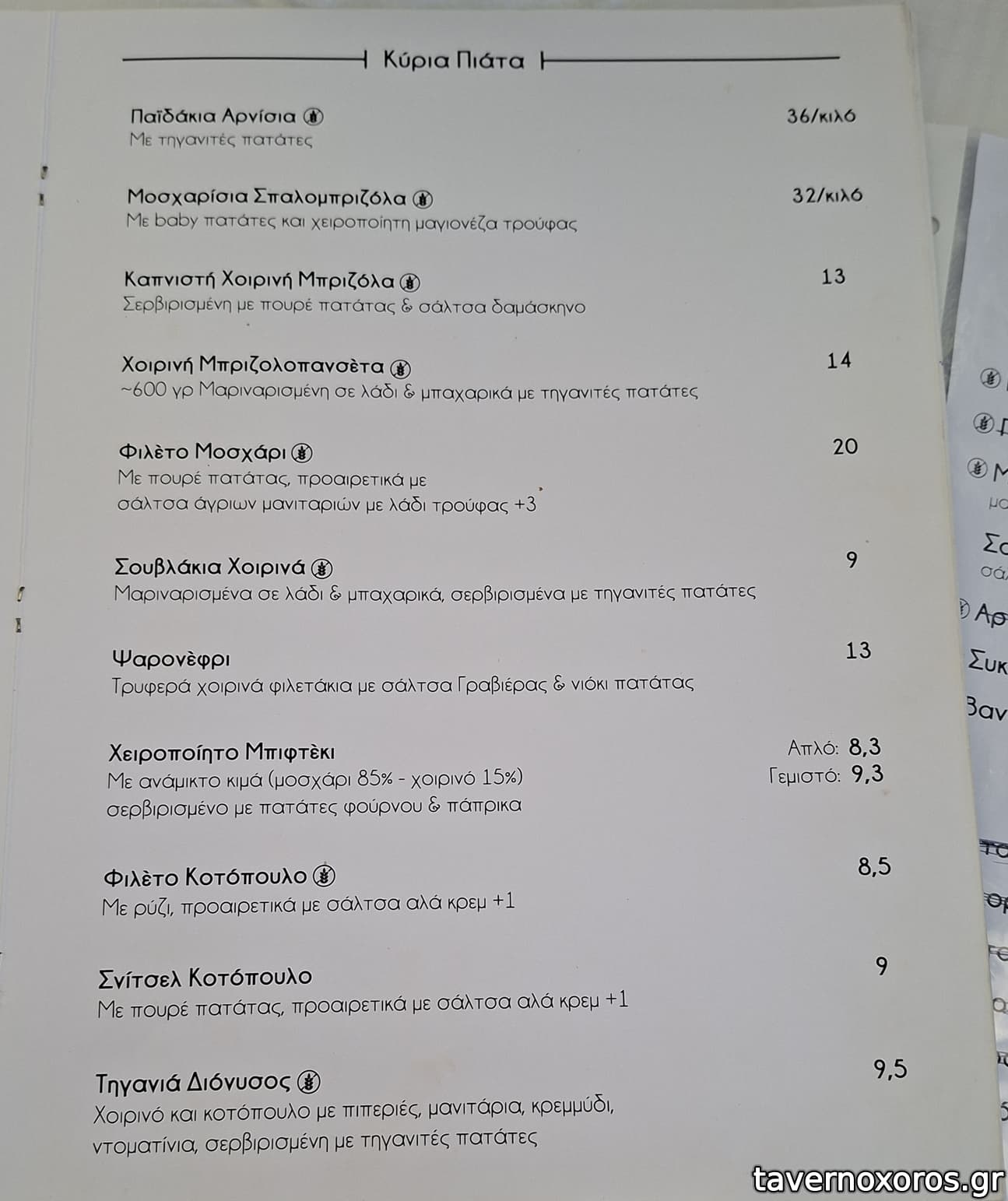 Είχα να πάω αρκετά χρόνια και το ήθελα καιρό οπότε με το που βόλεψε η τοποθεσία το επισκεφθήκαμε. Δοκιμάστηκαν τυροκαυτερή (καλή), μπάτζος με μαρμελάδα ντομάτας (καλός), σαλάτα Μήλο (πολύ καλή), τζατζίκι (οκ), μελιτζανομπουρεκάκια (πολύ καλά), μπαμπαλάσκες (μέτριες), περέκ (δεν θύμιζε περέκ αλλά οκ), μπριζόλα σούβλας x2 (πολύ καλή), μανιτάρια ψητά (οκ), συκώτι μοσχαρίσιο (καλό), τηγανιά Διόνυσος (πολύ καλή) και μοσχάρι με μελιτζάνες (πολύ καλό).