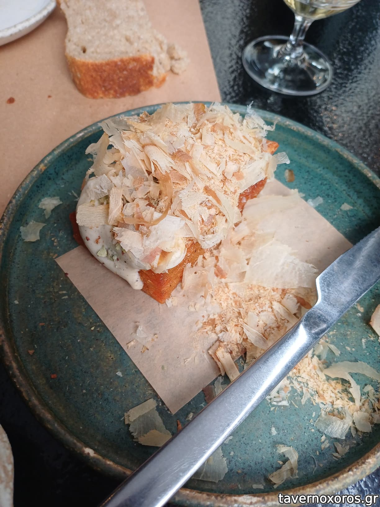 Ισορροπημένη, φροντισμένη γεύση. Η γίδα ψιλοκομμένη σε στικς και μαλακωμένη. Το ψωμάκι από προζύμι μάλλον το κάνουν οι ίδιοι?