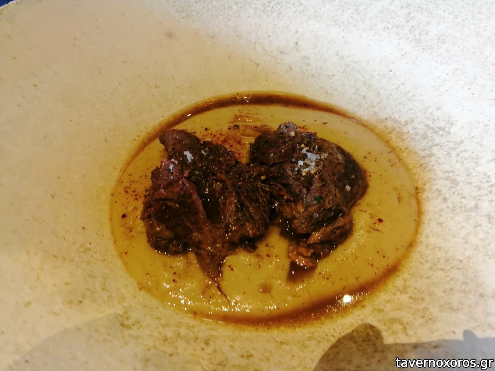 Μάγουλα μοσχαρίσια, κρέμα τραχανά (13,8€, αδιάφορο)