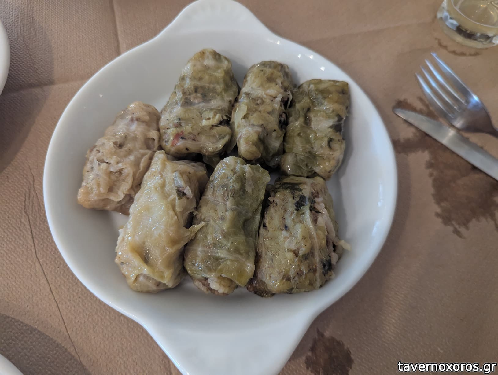 Λαχανοσαρμάδες (στεγνοί γιατί ξαναζεστάθηκαν, θα βοηθούσε λίγο αυγολέμονο, αλλιώς είχαν γεύση)