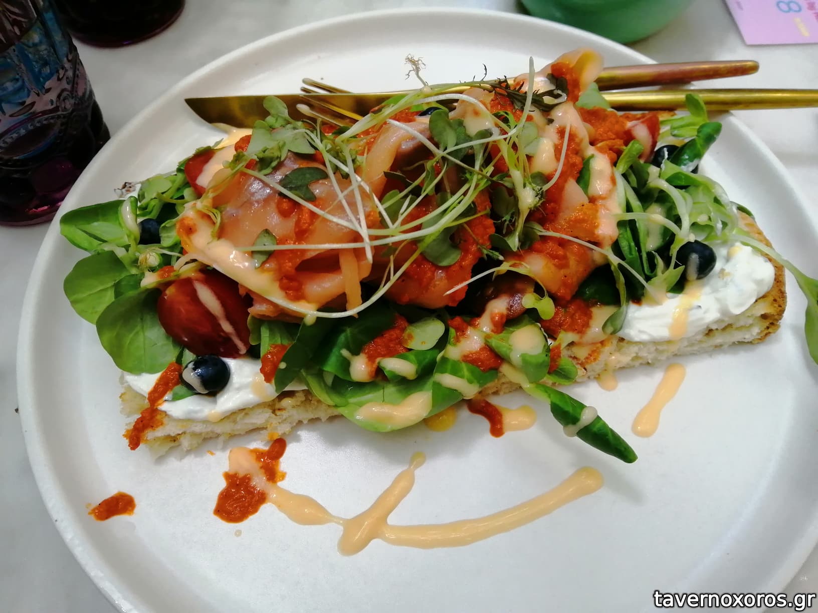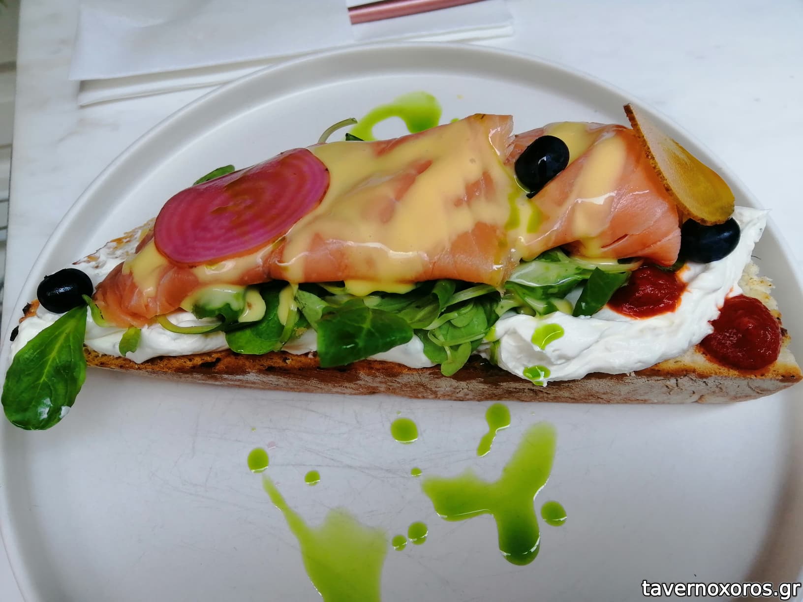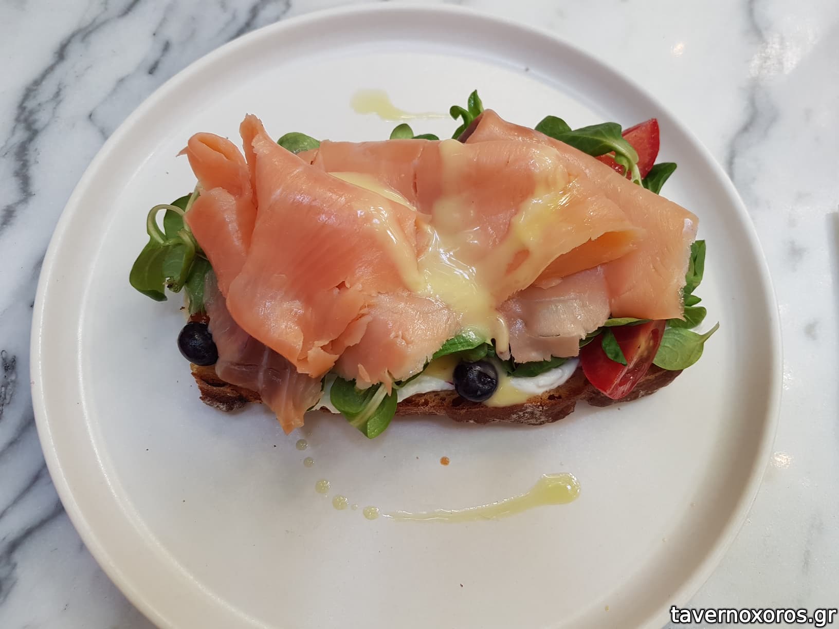 "Open sandwich καπνιστού σολομού" (μια χαρά)